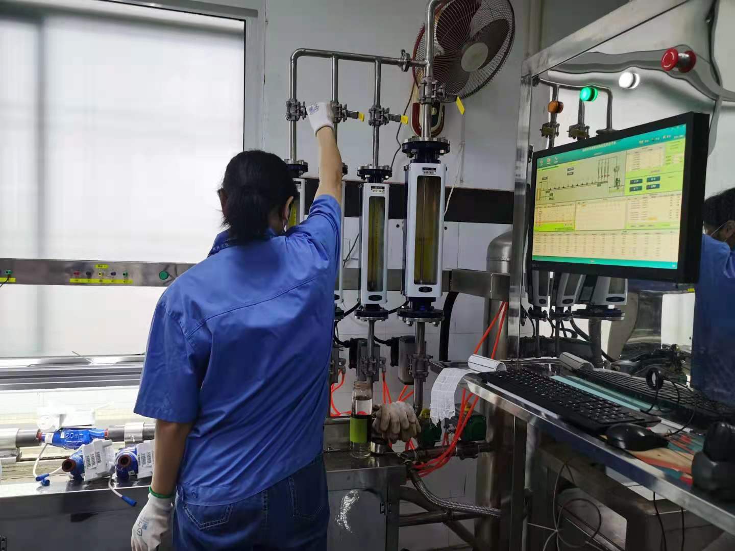 檢定員正在測(cè)試電子遠(yuǎn)傳水表的回傳精度