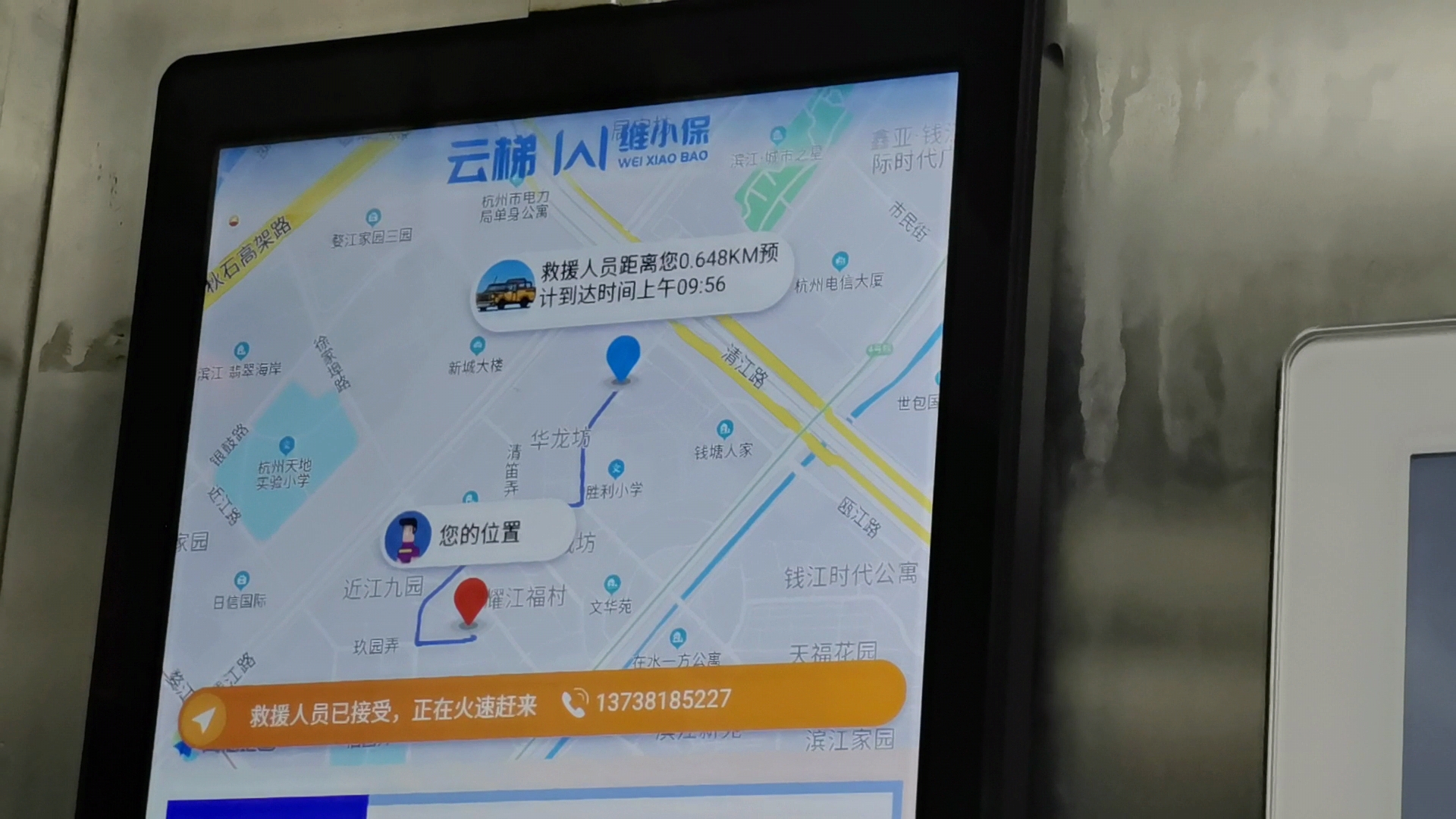 在杭州近江新六園小區(qū),記者親身體驗(yàn)了“電梯突發(fā)困人”的救援演習(xí)全過(guò)程。大約1分鐘的時(shí)間,電梯內(nèi)響起了“我們已收到您電梯的故障信息,應(yīng)急救援已啟動(dòng),救援隊(duì)伍將很快到達(dá)……”的提示音。5分鐘不到,救援人員抵達(dá)現(xiàn)場(chǎng),10分鐘不到,“被困人員”成功獲救。據(jù)介紹,一旦出現(xiàn)電梯困人故障,平臺(tái)將自動(dòng)識(shí)別并發(fā)出報(bào)警,96333話(huà)務(wù)人員會(huì)第一時(shí)間與電梯內(nèi)的乘客聯(lián)系,進(jìn)行實(shí)時(shí)人工安撫。同時(shí),依托電梯精準(zhǔn)電子地圖,平臺(tái)還會(huì)自動(dòng)派單給距離最近的電梯維保救援人員。這就是迭代升級(jí)后的“一體化電梯智管系統(tǒng)”。