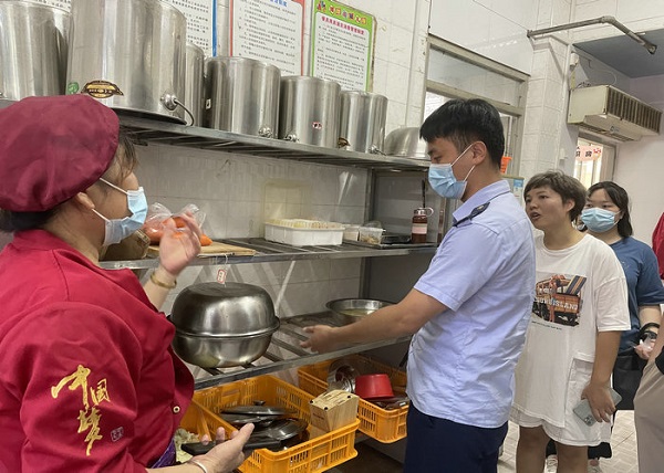 執(zhí)法人員查看后廚。資料圖片