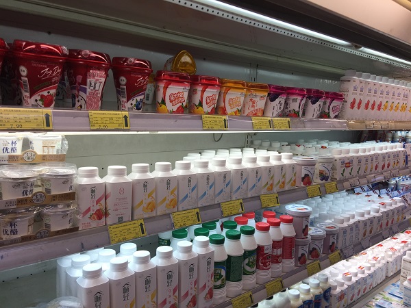 超市里的益生菌食品琳瑯滿目。孫燕明/攝