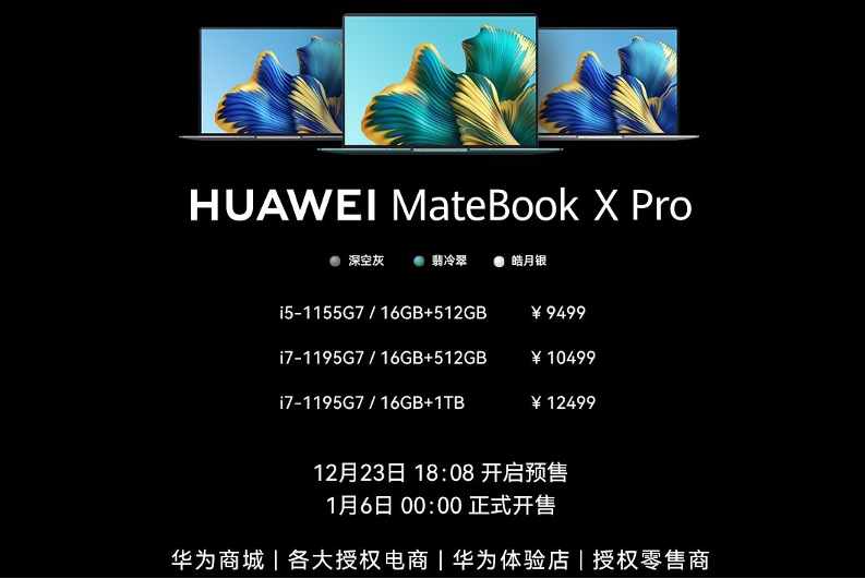 2021年12月23日,華為MateBook X Pro 2022款各版本已在華為商城、京東及天貓等電商平臺,華為官方旗艦店、零售門店等啟動預(yù)售,1月6日起正式開售。