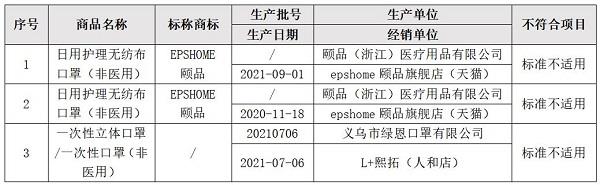 此外,有3款樣品明示標(biāo)準(zhǔn)為GB/T32610-2016《日常防護型口罩技術(shù)規(guī)范》,而該標(biāo)準(zhǔn)明確規(guī)定不適用于嬰幼兒、兒童呼吸防護用品(詳見表2)。
