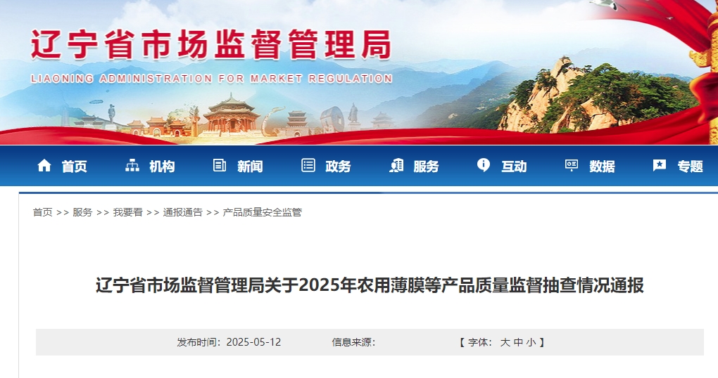 近期,遼寧省市場監(jiān)督管理局組織開展了農(nóng)用薄膜等產(chǎn)品質(zhì)量監(jiān)督抽查,現(xiàn)將抽查情況通報如下: