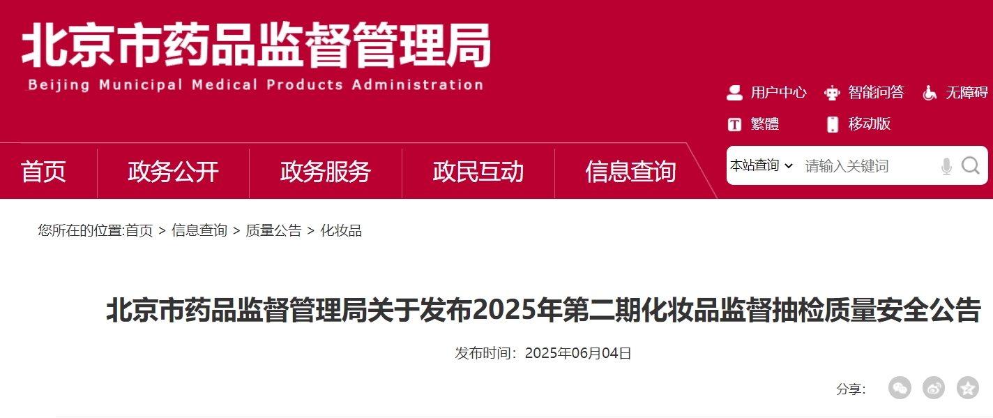 北京市藥品監(jiān)督管理局于2024年組織對全市化妝品生產(chǎn)環(huán)節(jié)(含注冊人、備案人、境內(nèi)責(zé)任人)及網(wǎng)絡(luò)經(jīng)營環(huán)節(jié)開展了監(jiān)督抽檢工作?,F(xiàn)將已核查完畢的6批次不合格產(chǎn)品(詳見附件)予以公告。相關(guān)單位已對不合格化妝品采取必要的控制措施,依據(jù)有關(guān)法律法規(guī)對不合格產(chǎn)品進行查處。