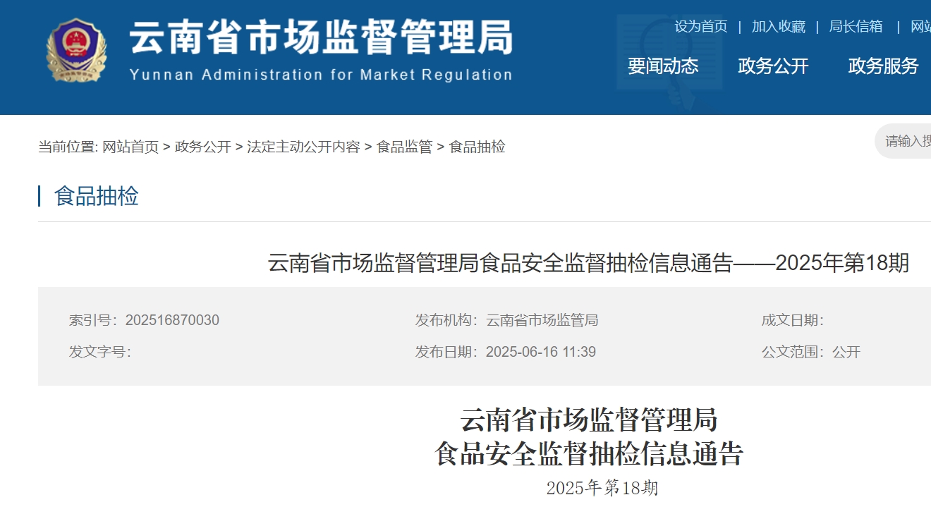 近期,云南省市場監(jiān)督管理局組織食品安全監(jiān)督抽檢1125批次樣品,檢出23批次樣品不合格。產(chǎn)品抽檢結(jié)果可查詢https://amr.yn.gov.cn/。