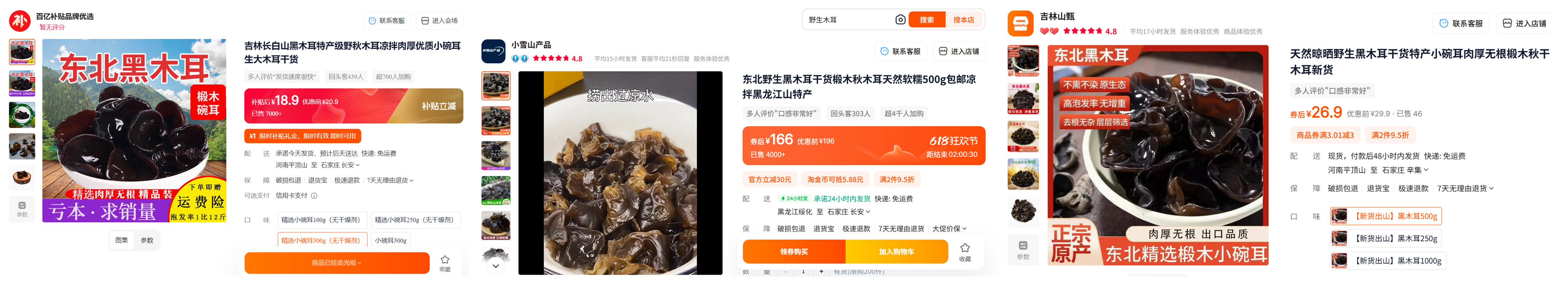 《中國消費者報》記者瀏覽購物平臺網(wǎng)頁發(fā)現(xiàn),每500克售價低于22元的秋木耳大都標注了“虧本求銷量”或“百億補貼品牌優(yōu)選”等字樣。黃晨陽分析認為,市場決定價格,現(xiàn)在黑木耳普遍供大于求,多數(shù)產(chǎn)品確實難以賣出高價。因此,不能簡單認定價格實惠的黑木耳就一定有問題,但某些售價顯著低于成本的所謂“野生黑木耳”,確實另有玄機。
