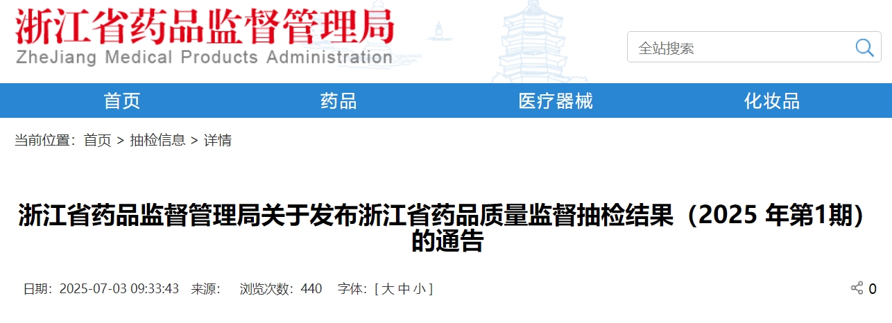 浙江省藥品監(jiān)督管理局官網(wǎng)截圖