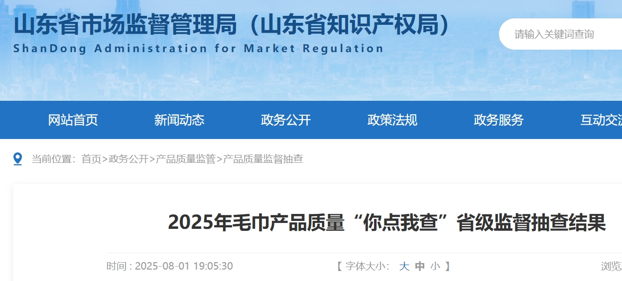 2025年第1批產(chǎn)品質(zhì)量省級監(jiān)督抽查共抽查毛巾產(chǎn)品40批次,其中,銷售環(huán)節(jié)30批次,網(wǎng)售環(huán)節(jié)10批次。