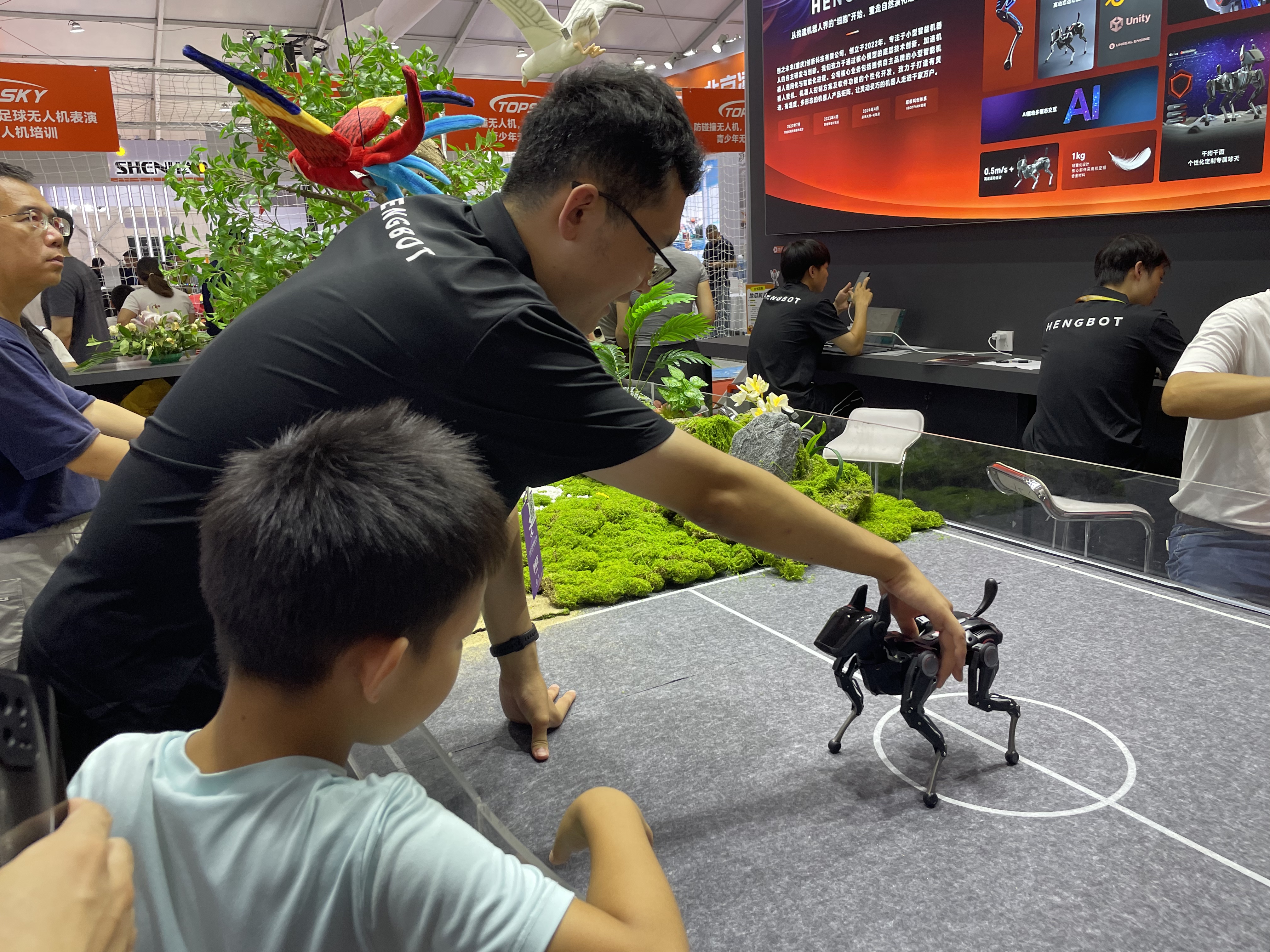 “怎么這么?。肯袷莻€(gè)玩具?!痹谡箙^(qū)的小觀眾對一款只有1千克重的四足機(jī)器狗充滿好奇。記者了解到,這是一款高動態(tài)AI仿生智能機(jī)器人,名為哮天Sirius。它能夠理解并響應(yīng)人類指令,當(dāng)“聽到”別人叫它的名字時(shí)會自然地與人互動:坐下、跳躍,甚至跳舞,主要面向家庭娛樂場景。