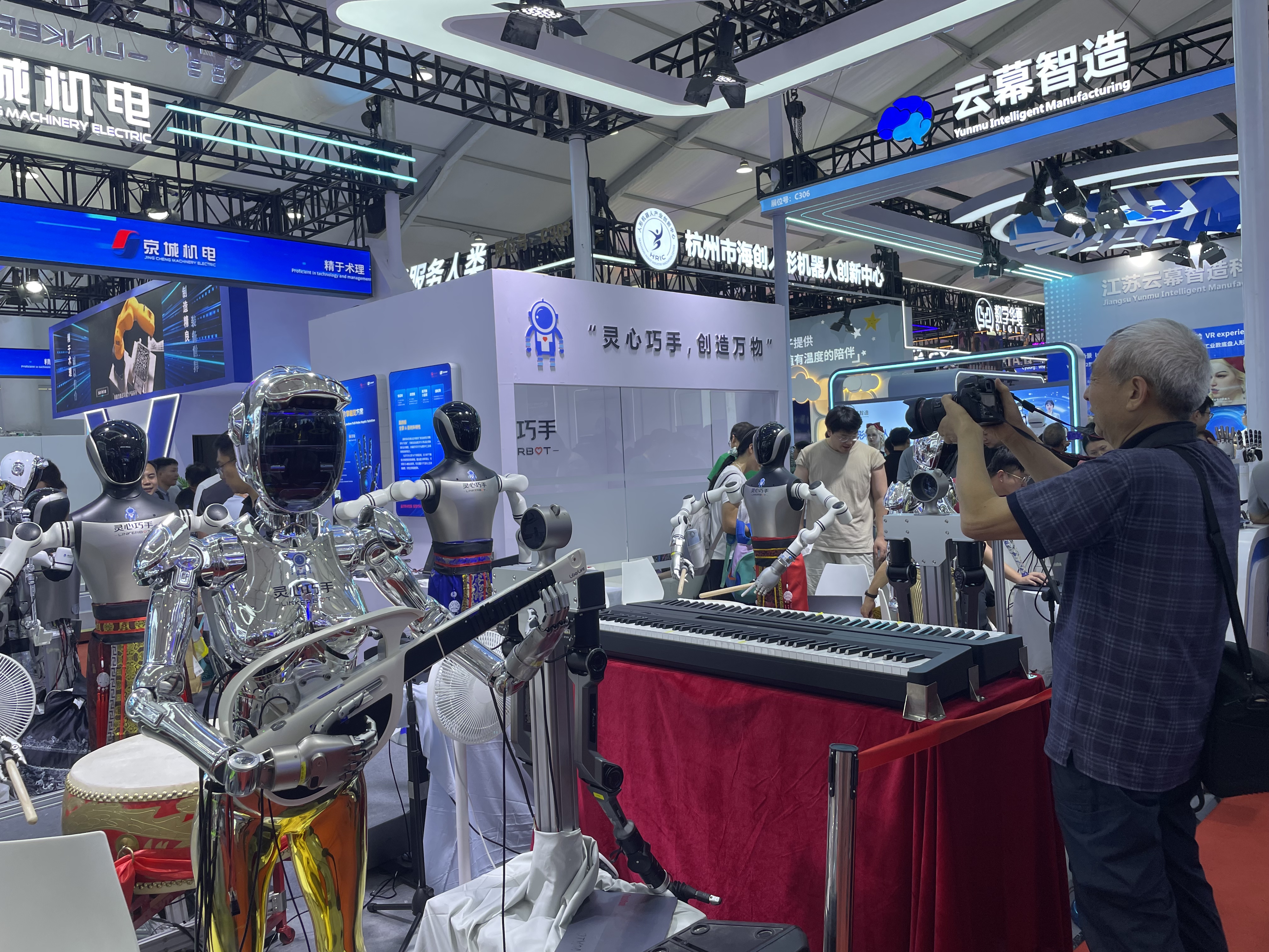 中國消費(fèi)者報(bào)報(bào)道(記者王小月)8月8日至12日在北京舉辦的2025世界機(jī)器人大會上,機(jī)器人紛紛展示看家本領(lǐng),有組成樂隊(duì)演奏樂器的,有在綠茵場踢足球的,還有擔(dān)任售貨員為顧客提供購物服務(wù)的……本次大會以“讓機(jī)器人更智慧 讓具身體更智能”為主題,200余家國內(nèi)外機(jī)器人相關(guān)企業(yè)帶來1500余件展品,其中新品多達(dá)100余款。此外,50家人形機(jī)器人整機(jī)企業(yè)帶來了他們最新的展品及行業(yè)解決方案,參展數(shù)量創(chuàng)同類展會之最。