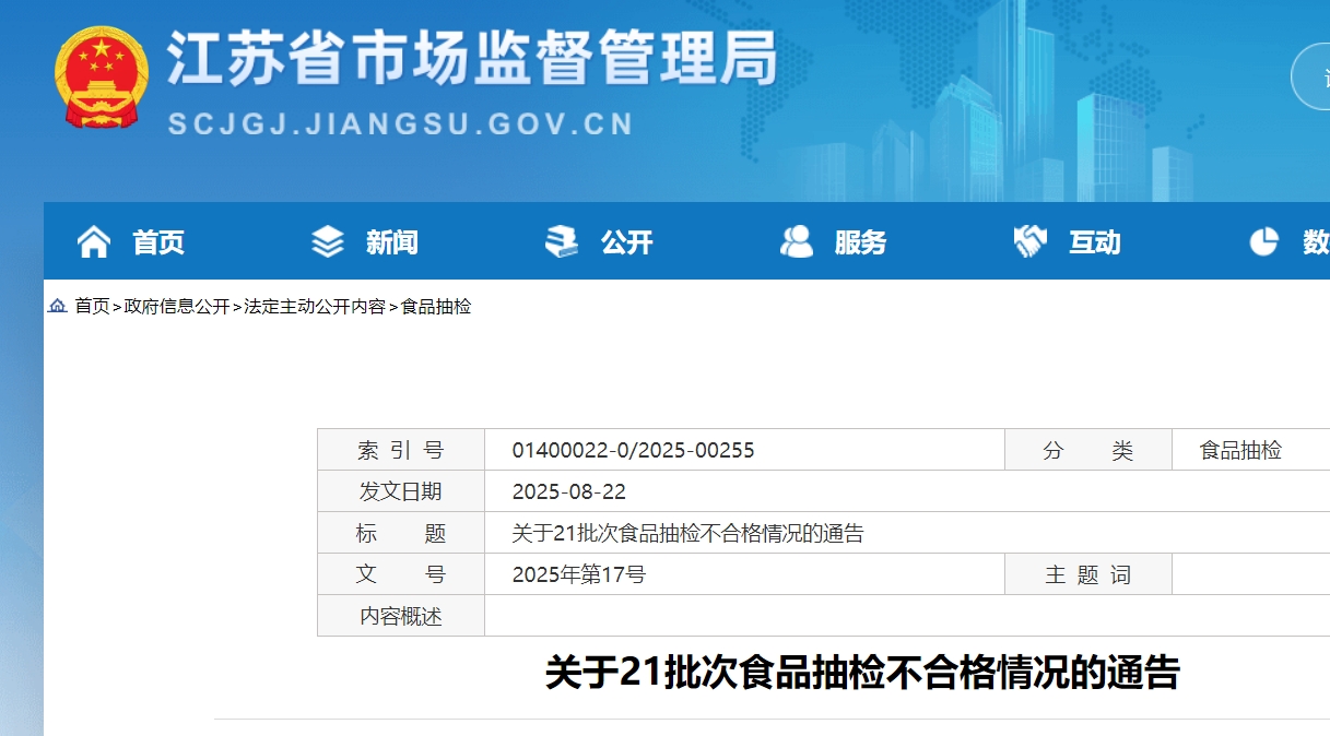 近期,江蘇省市場監(jiān)督管理局組織食品安全抽檢,抽取食用農(nóng)產(chǎn)品、肉制品、糕點、糧食加工品、乳制品、蔬菜制品、餐飲食品、淀粉及淀粉制品、飲料、冷凍飲品、方便食品、食用油、油脂及其制品、調(diào)味品、炒貨食品及堅果制品、茶葉及相關(guān)制品、豆制品及罐頭等17大類食品1356批次樣品,檢出其中食用農(nóng)產(chǎn)品、餐飲食品、糕點、蔬菜制品、淀粉及淀粉制品、方便食品、罐頭、冷凍飲品及飲料等9大類食品21批次樣品不合格,詳細信息見附表。