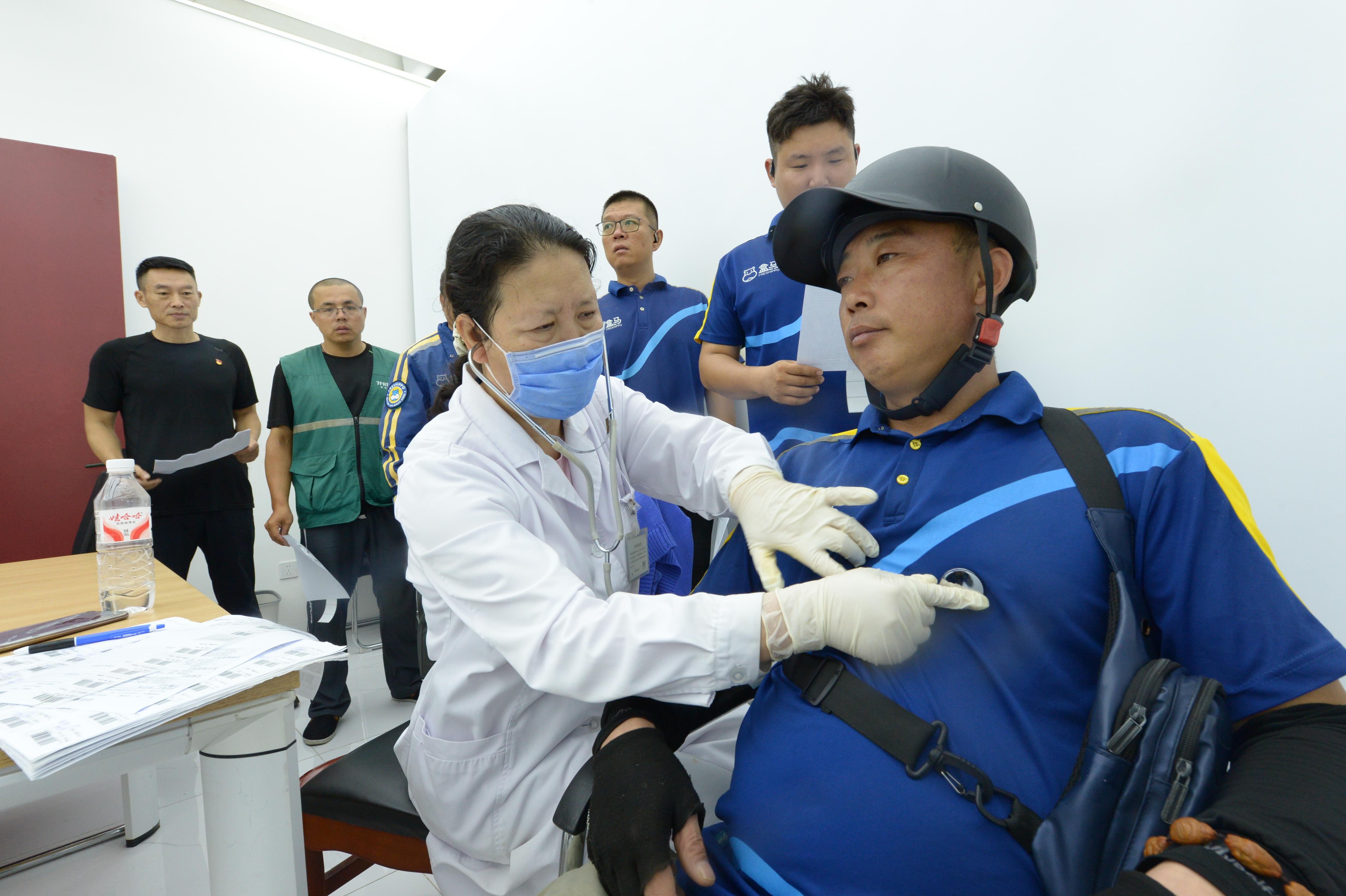 醫(yī)生給外賣騎手做檢查。裴新軍/攝