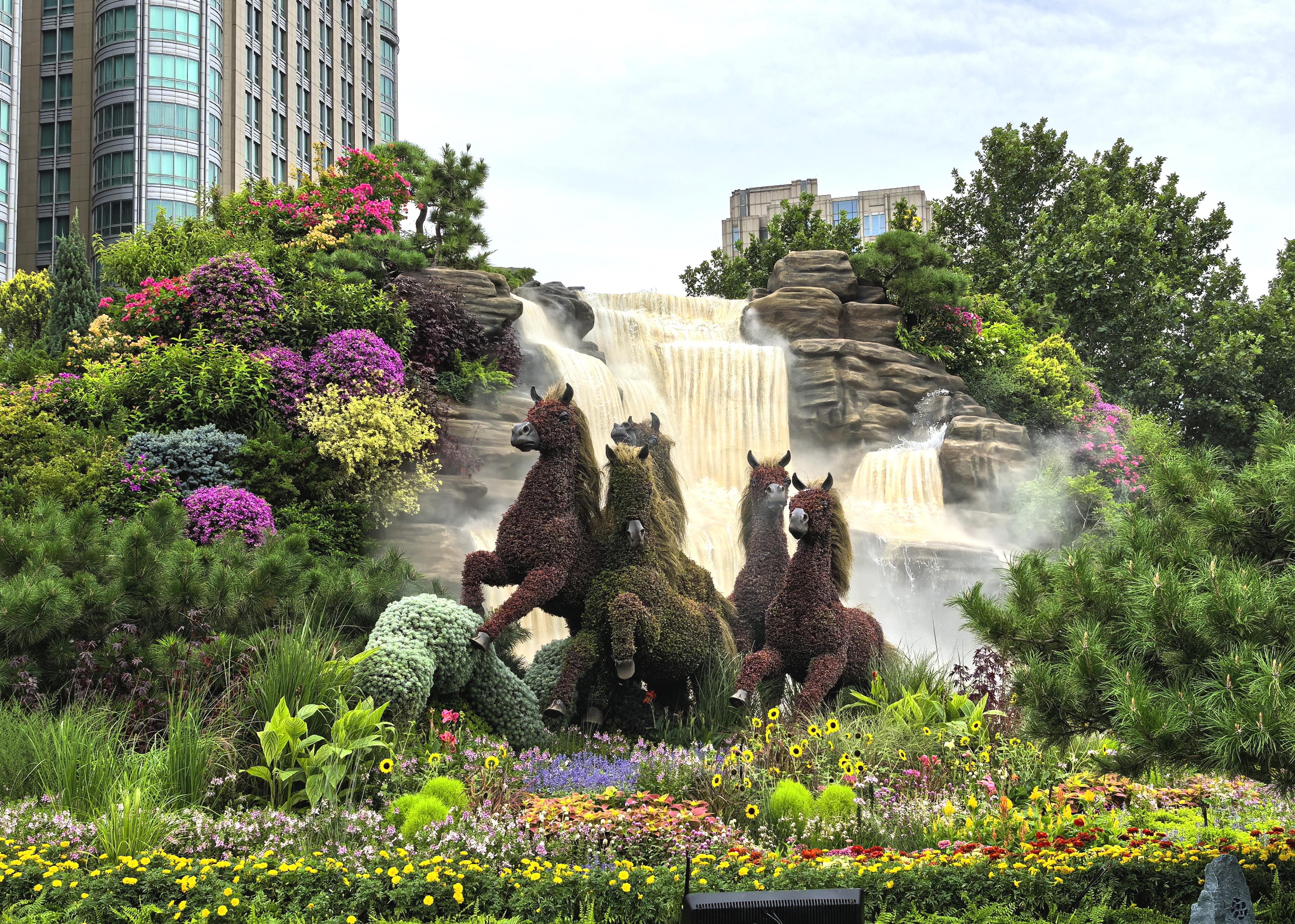 長安街沿線東單東南角的“黃河贊歌”花壇。