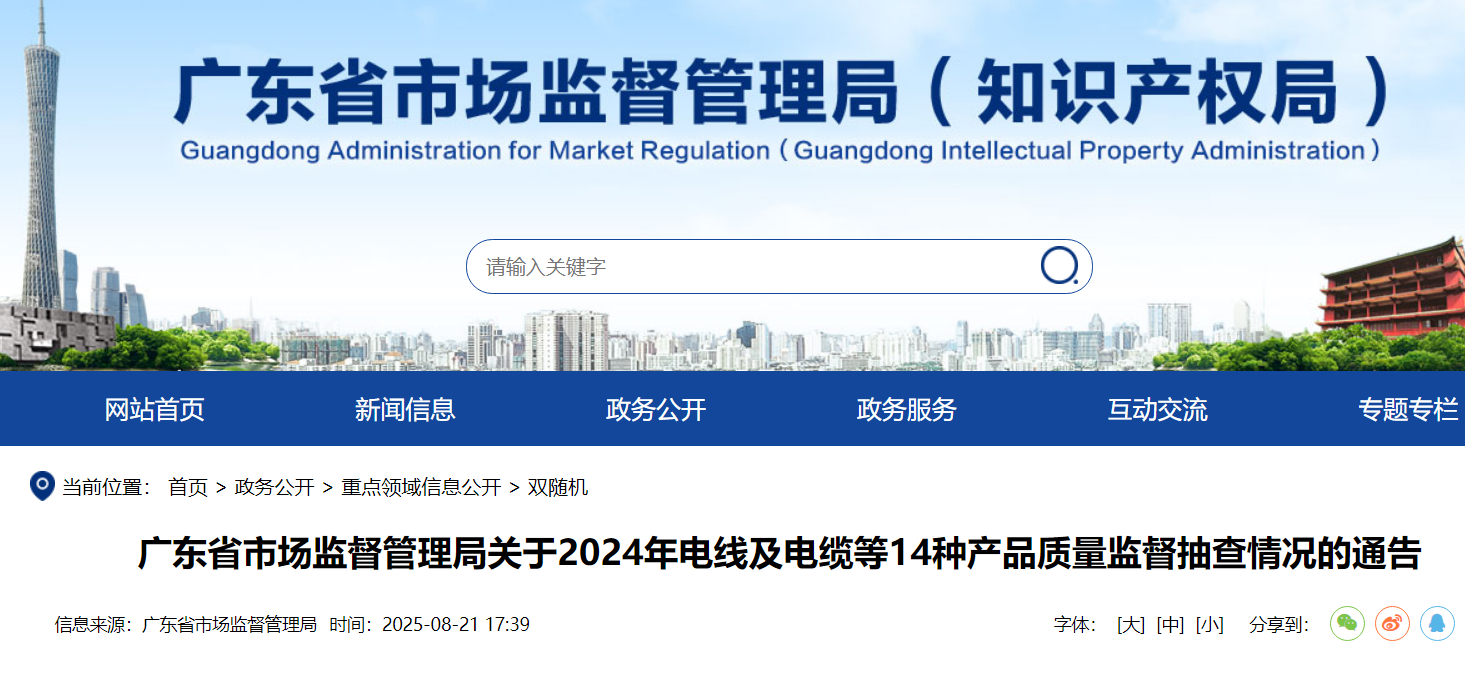 根據(jù)《中華人民共和國(guó)產(chǎn)品質(zhì)量法》《產(chǎn)品質(zhì)量監(jiān)督抽查管理暫行辦法》《廣東省產(chǎn)品質(zhì)量監(jiān)督條例》等相關(guān)規(guī)定,2024年,廣東省市場(chǎng)監(jiān)督管理局組織開(kāi)展電線(xiàn)及電纜等14種產(chǎn)品質(zhì)量監(jiān)督抽查?,F(xiàn)將抽查情況通告如下。
