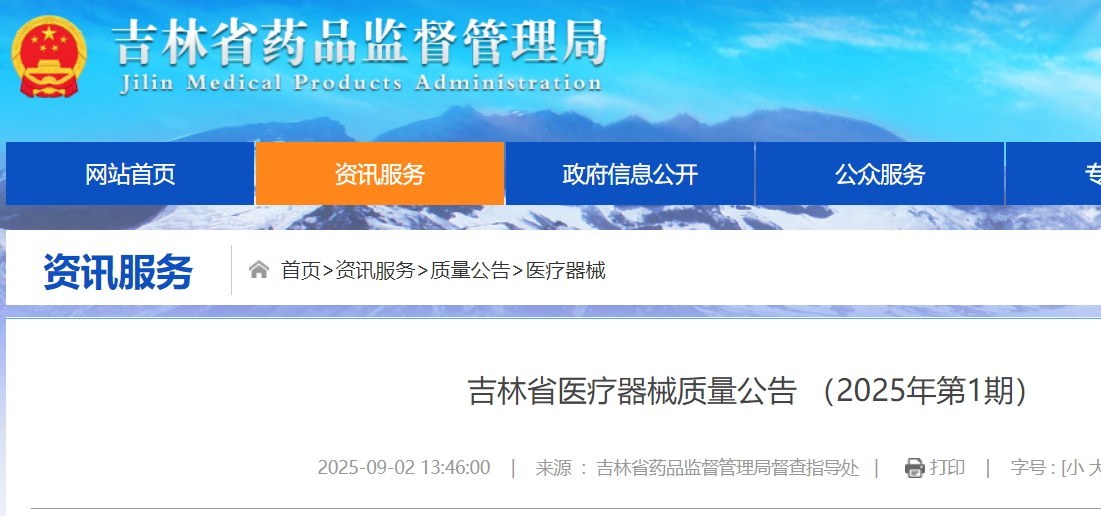 吉林省藥品監(jiān)督管理局官網(wǎng)截圖