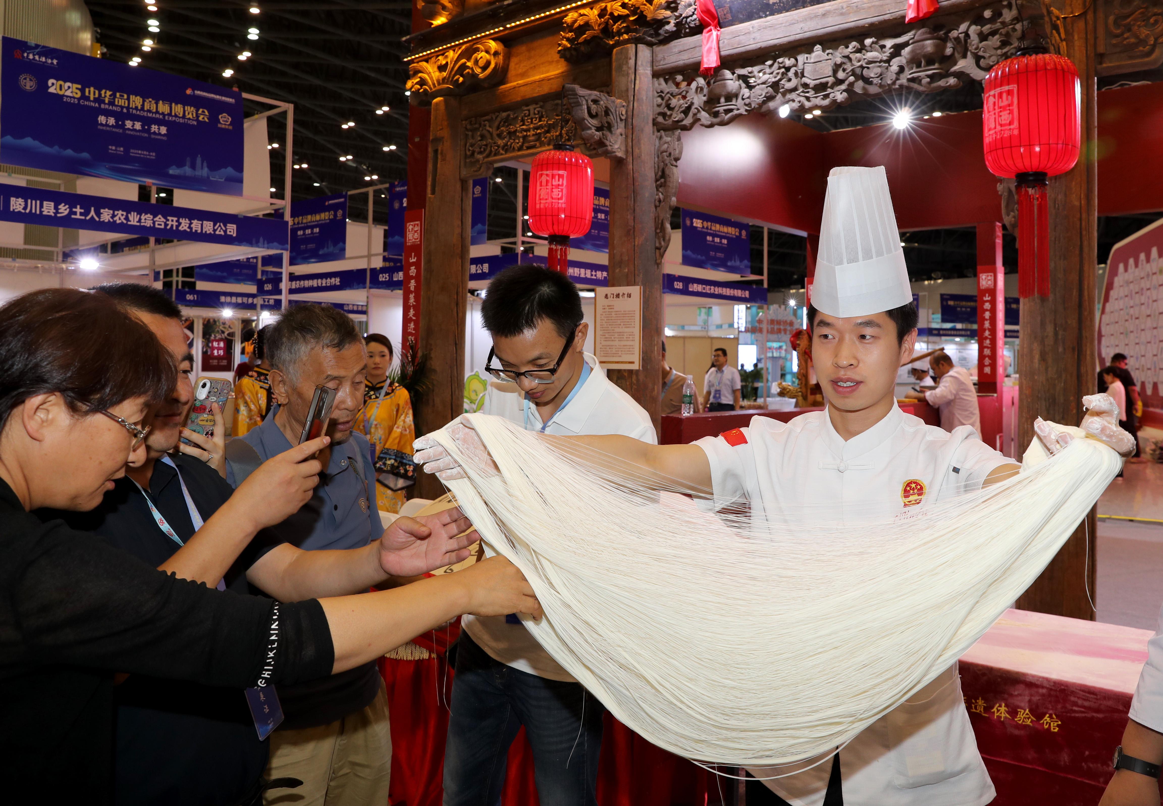 近日,為期3天的2025中華品牌商標(biāo)博覽會(huì)在山西太原舉行。本次博覽會(huì)劃分“商品商標(biāo)展區(qū)”“服務(wù)商標(biāo)展區(qū)”和“地理標(biāo)志展區(qū)”3個(gè)特色展區(qū),聚集了來(lái)自我國(guó)31個(gè)省、自治區(qū)、直轄市的600余家國(guó)內(nèi)展商及來(lái)自美國(guó)、波蘭等9個(gè)國(guó)家和地區(qū)的近20家海外展商。在展會(huì)現(xiàn)場(chǎng),青藏高原牦牛肉干、老字號(hào)霍州年饃、忻州五谷雜糧、山西會(huì)館細(xì)絲拉面等美食匯聚一堂,參觀者可以邊逛展會(huì)邊品美食。