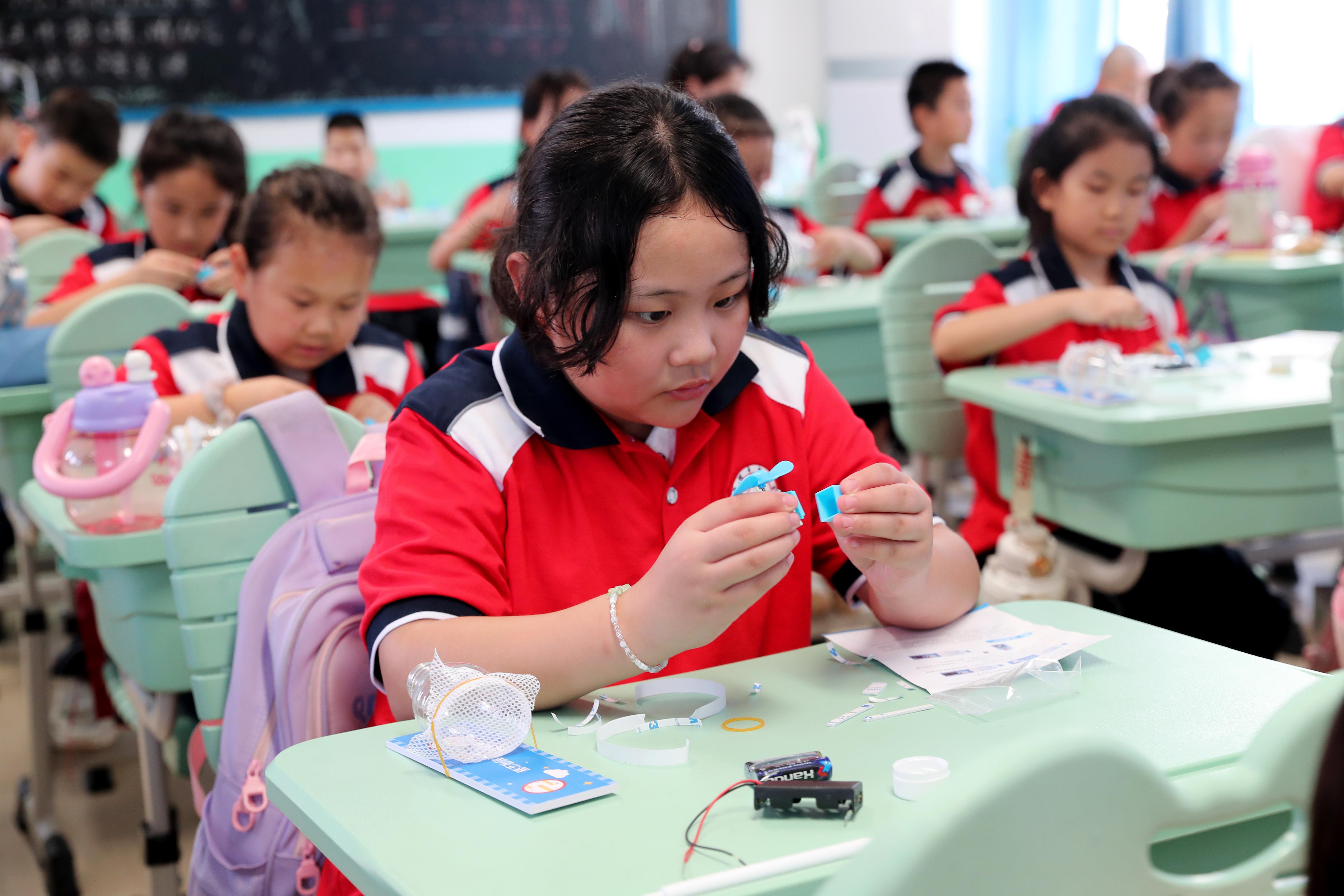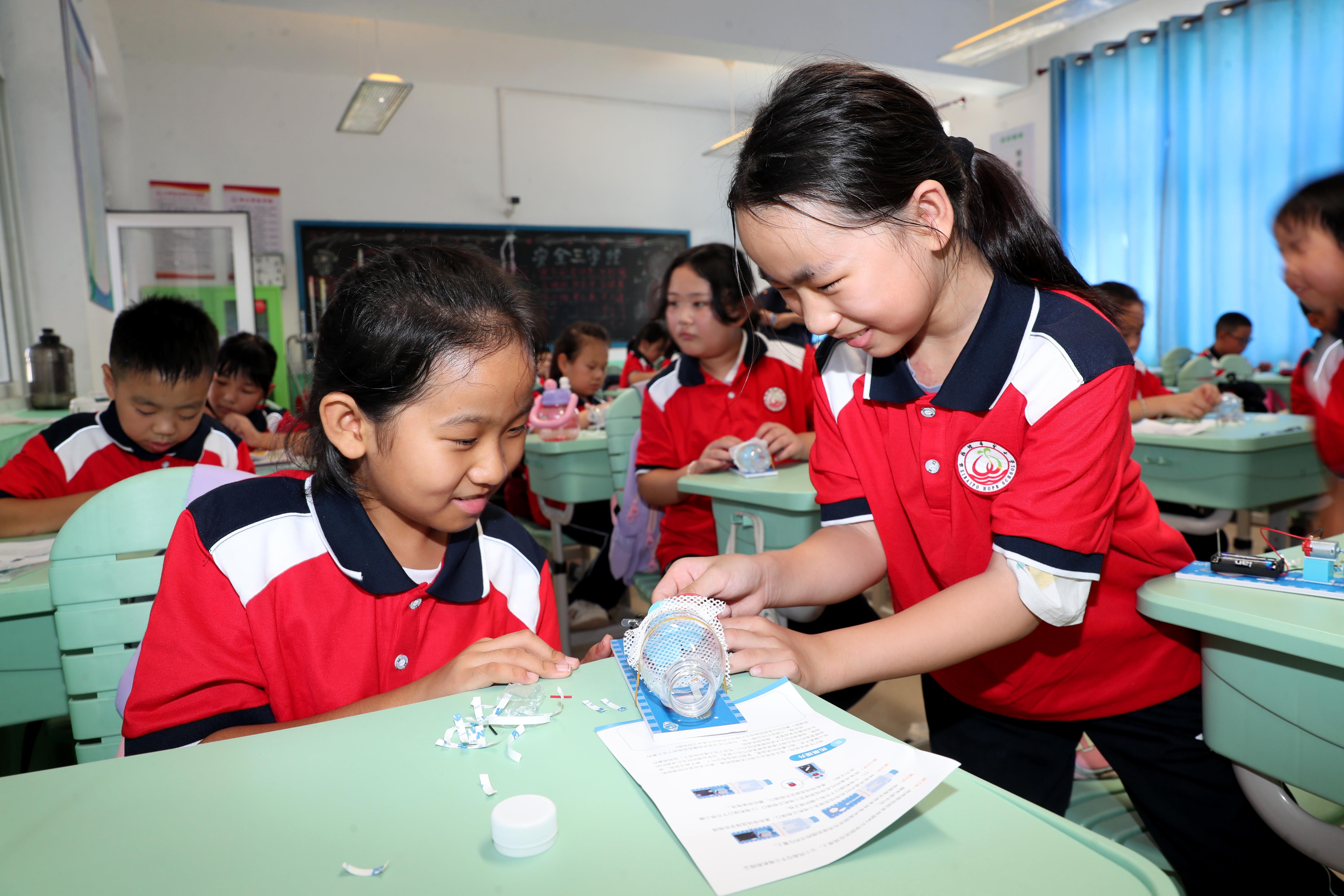 9月1日,在河北省平山縣西柏坡希望小學(xué)的教室里,同學(xué)們上的第一堂課是科學(xué)教育課。噴氣推進(jìn)車、液氮大炮、飛天彈射器、VR等內(nèi)容讓同學(xué)們?cè)谕嬷袑W(xué),在學(xué)中玩,也讓孩子們感受到科學(xué)的魅力。