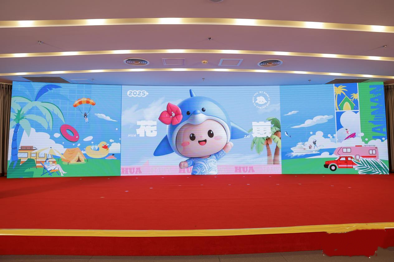 在發(fā)布會(huì)現(xiàn)場(chǎng),本屆露博會(huì)吉祥物“花崽”與主題曲《山海相見(jiàn)》正式發(fā)布,成為傳遞海南風(fēng)情與露營(yíng)精神的重要符號(hào)。其中,吉祥物“花崽”以海南三角梅為靈感,融入?;◢u浪花元素與海豚親和力設(shè)計(jì),象征熱情堅(jiān)韌的露營(yíng)精神。