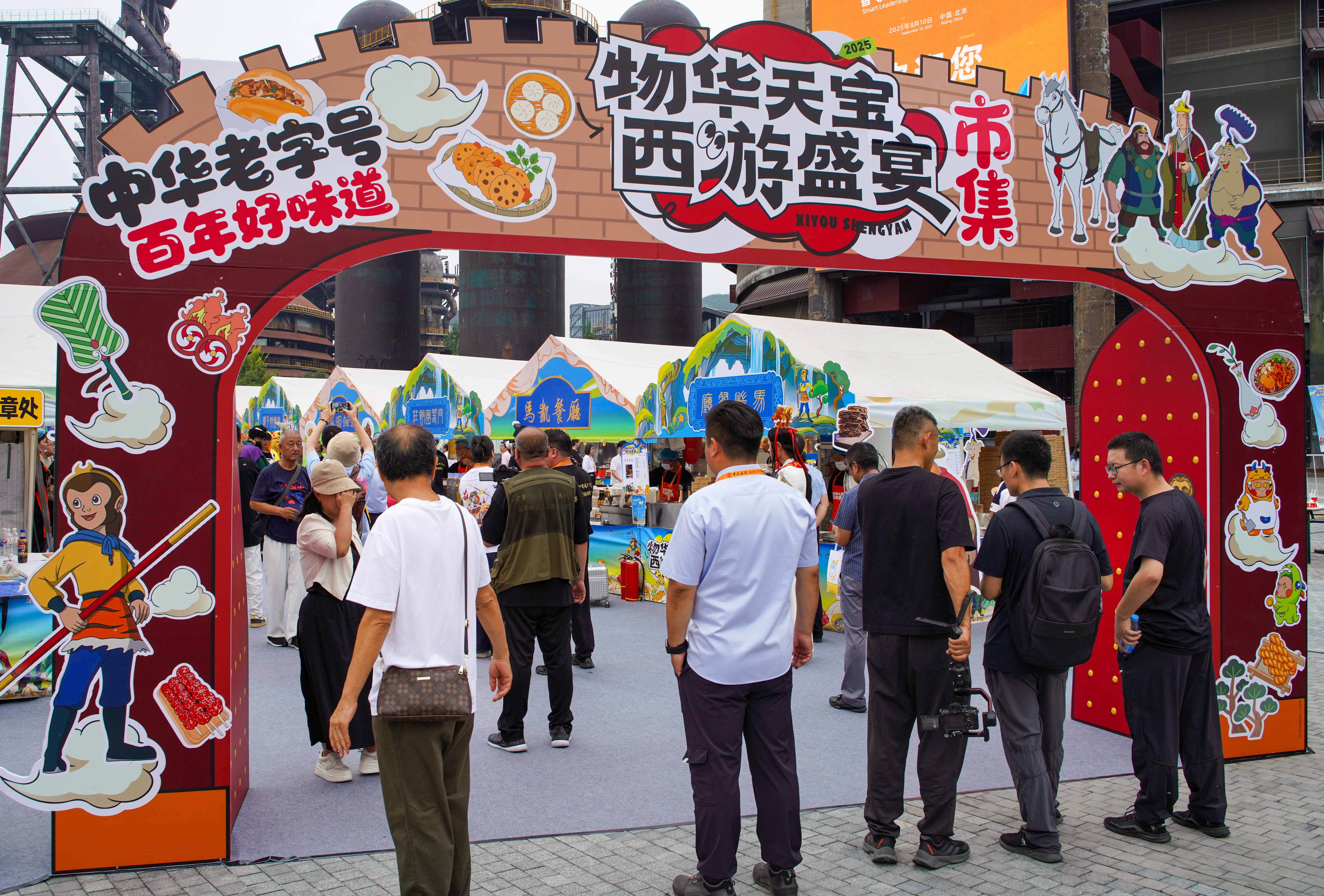 9月10日至14日,全國首個“物華天寶•西游盛宴”動漫跨界老字號創(chuàng)意美食市集在北京首鋼園舉辦。在該市集中,游客不僅可以在多家承載京味文化的百年老字號攤位上一飽口福,還可以和化身西游人物的NPC互動合影。