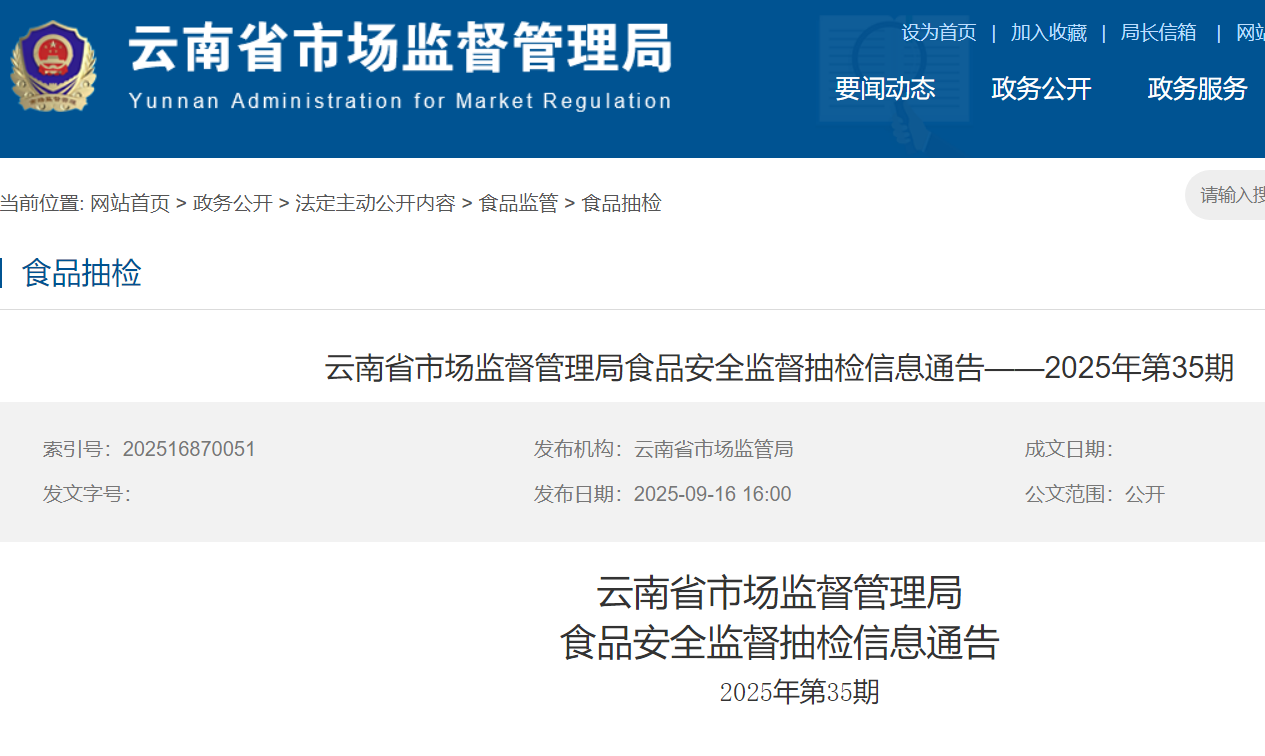 近期,云南省市場監(jiān)督管理局組織食品安全監(jiān)督抽檢870批次樣品,檢出16批次樣品不合格。產(chǎn)品抽檢結果可查詢https://amr.yn.gov.cn/。