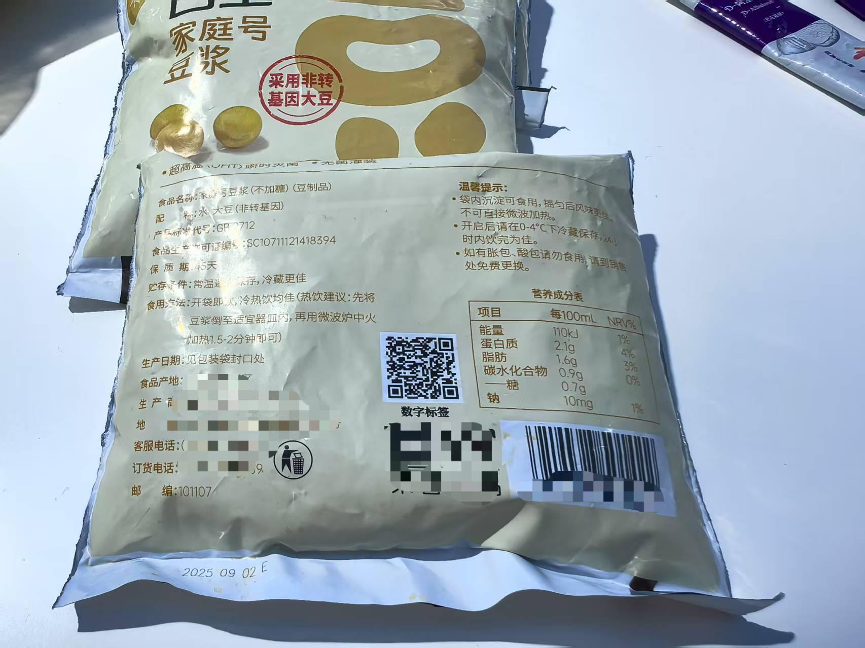 豆?jié){產(chǎn)品上的數(shù)字標簽。孟剛/攝