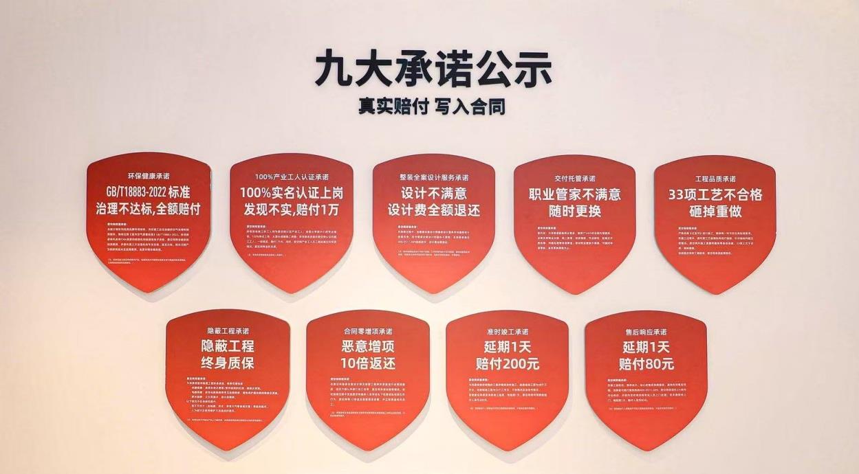 為切實保障客戶權(quán)益,愛空間推出九大服務(wù)承諾,并將相關(guān)賠付條款明確寫入合同。具體包括:在環(huán)保健康方面,嚴格遵循GB/T18883—2022標準,如治理未達標,全額賠付;確保產(chǎn)業(yè)工人100%實名認證上崗,若信息不實,賠付1萬元;如客戶對方案不滿意,設(shè)計費全額退還;配備職業(yè)管家,不滿意可隨時更換;33項工藝出現(xiàn)不合格一律砸掉重做;隱蔽工程享受終身質(zhì)保;合同簽訂杜絕惡意增項,如有發(fā)生10倍返還;工期延誤1天賠付200元;售后響應(yīng)延遲1天賠付80元。