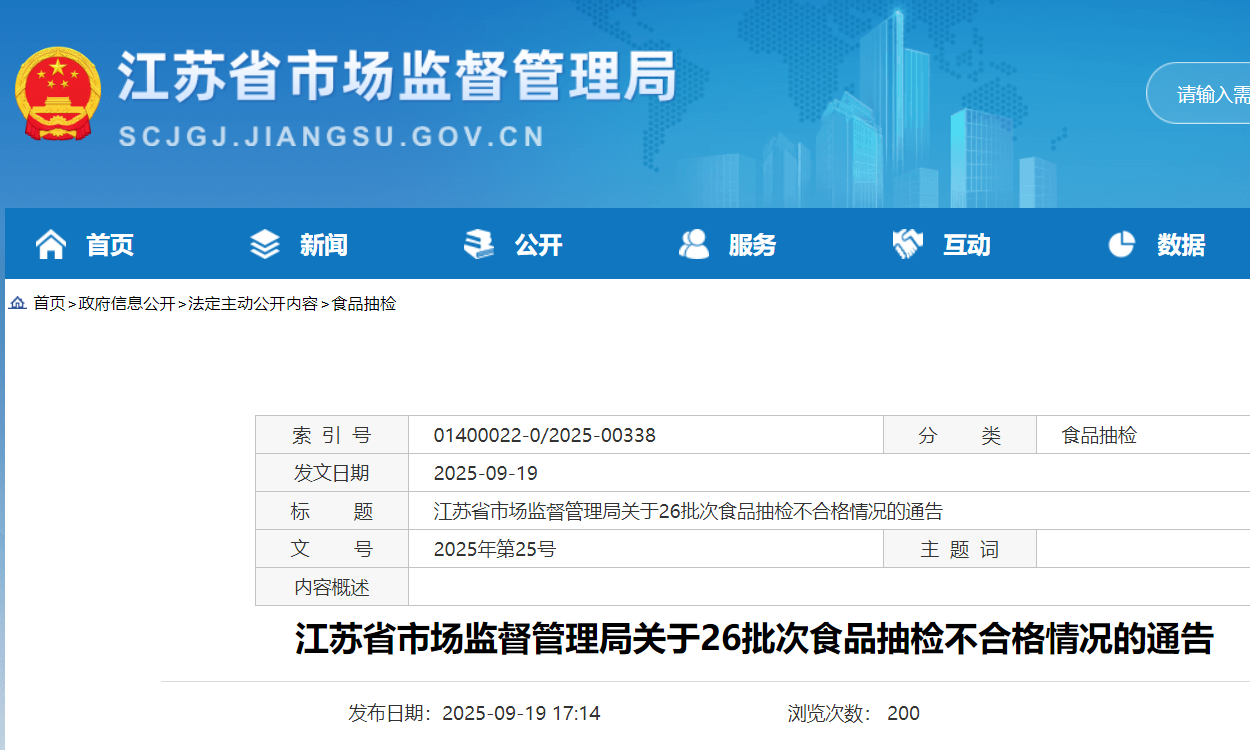 近期,江蘇省市場(chǎng)監(jiān)督管理局組織食品安全抽檢,抽取食用農(nóng)產(chǎn)品、糕點(diǎn)、調(diào)味品、飲料、炒貨食品及堅(jiān)果制品、茶葉及相關(guān)制品、餐飲食品、糧食加工品、肉制品、食用油、油脂及其制品、蔬菜制品、豆制品、食品添加劑及蜂產(chǎn)品等14大類食品1944批次樣品,檢出其中餐飲食品、食用農(nóng)產(chǎn)品、糕點(diǎn)、調(diào)味品、炒貨食品及堅(jiān)果制品、飲料及蔬菜制品等7大類食品26批次樣品不合格,詳細(xì)信息見附表。