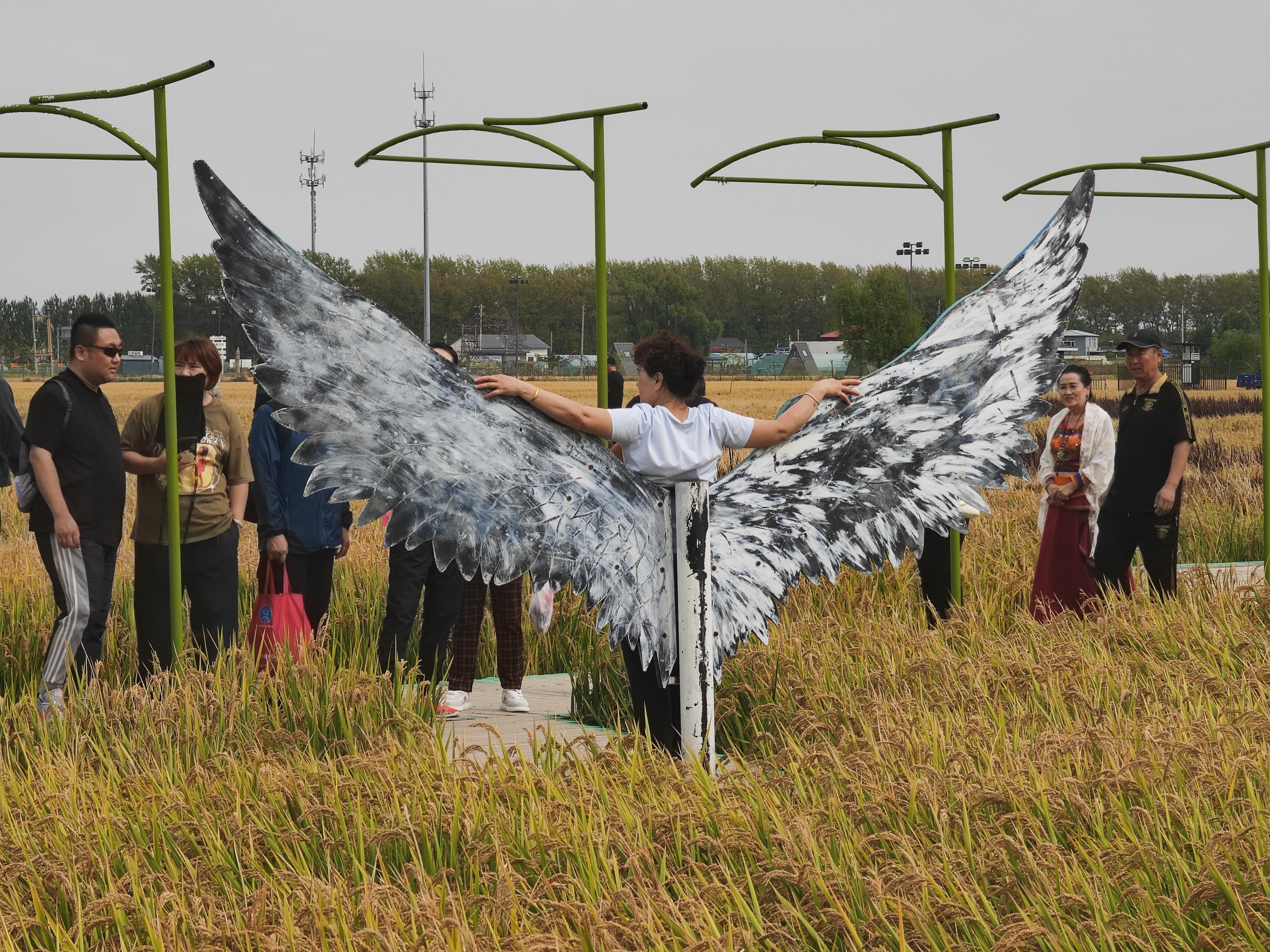 記者注意到,景區(qū)里,有很多游客是全家人一起出行,也有青年情侶、慕名而來的旅游團隊。稻夢空間工作人員姜海燕向記者介紹,為了兼顧游客的多樣化需求,景區(qū)今年在4座觀景臺周邊規(guī)劃布局了13幅稻田畫,既有盛世華章的經(jīng)典主題,也有夸父追日的神話傳說,還有兼顧老、中、青不同年齡段的開心到老、無懼風(fēng)浪、兒時味道等稻田畫。