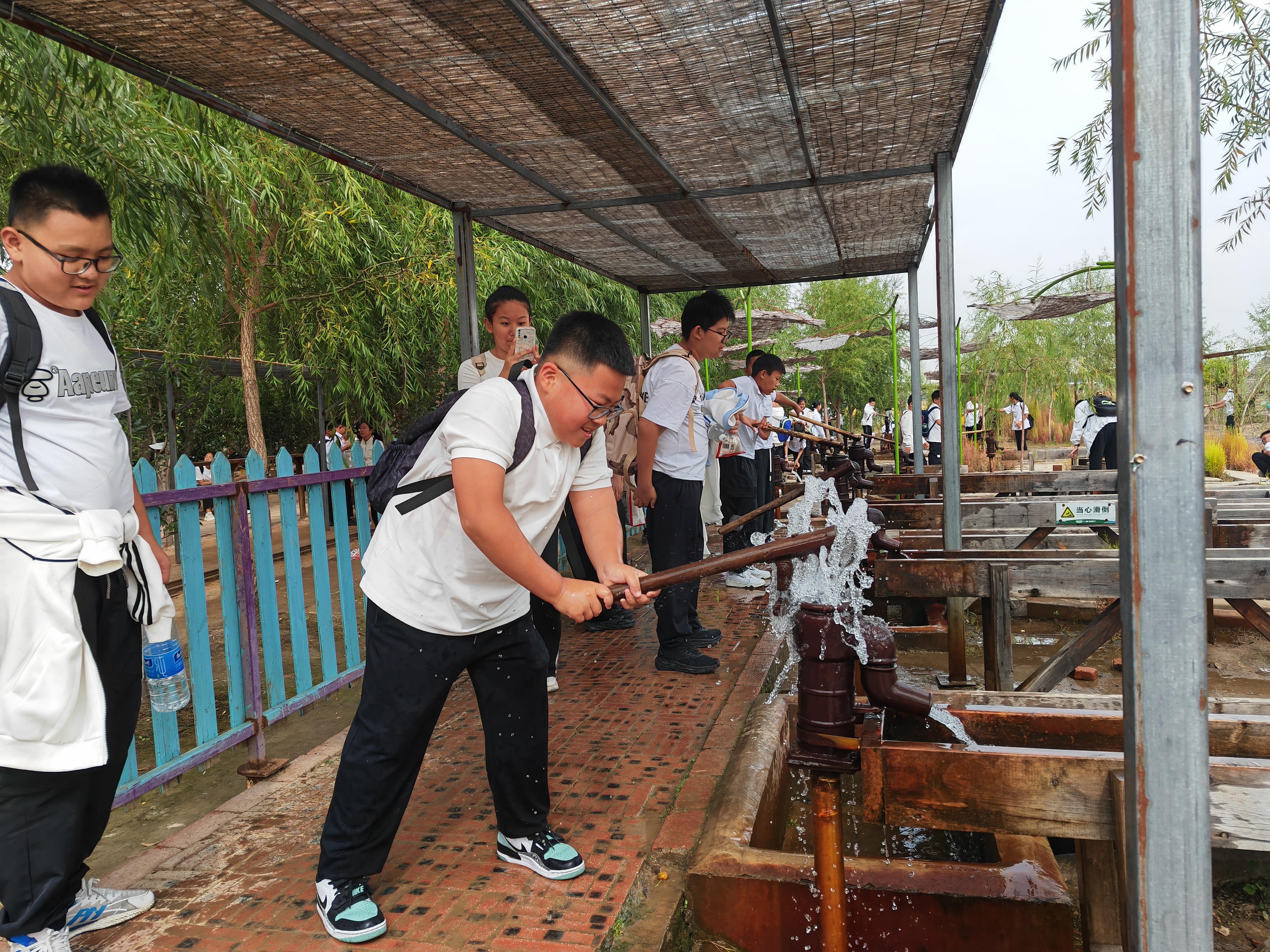 水稻種植離不開水,在稻夢空間,親水的游樂項目很多。在壓水井專區(qū),不少未見過此景的游客興致勃勃地上手嘗試。力氣不夠大或是用力不均的游客,無法持續(xù)壓出水來,而用力過猛的游客,不小心被濺了一身水,引得周圍的人笑聲不斷。