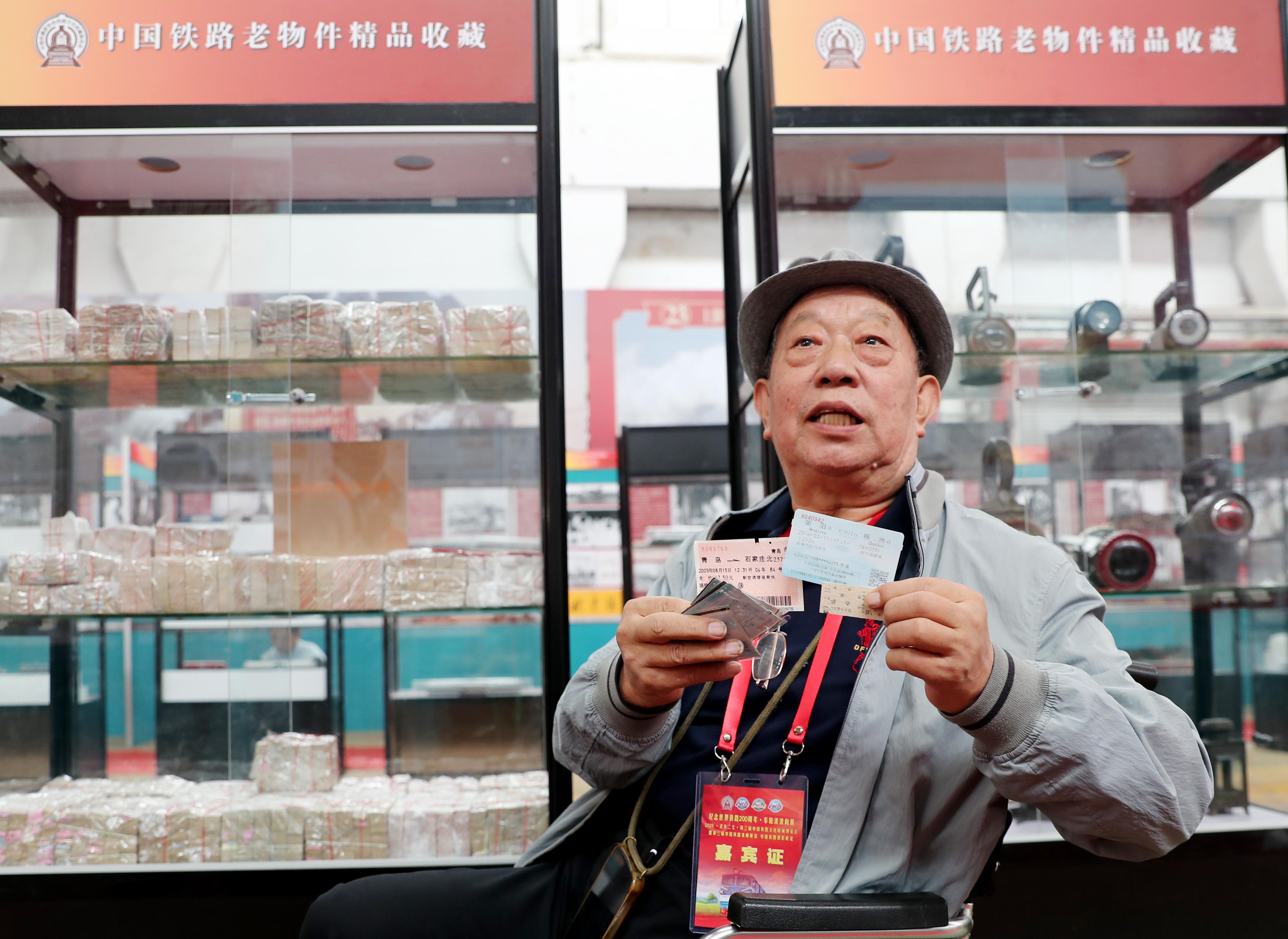 收藏愛好者展示我國鐵路不同時期的客運車票。