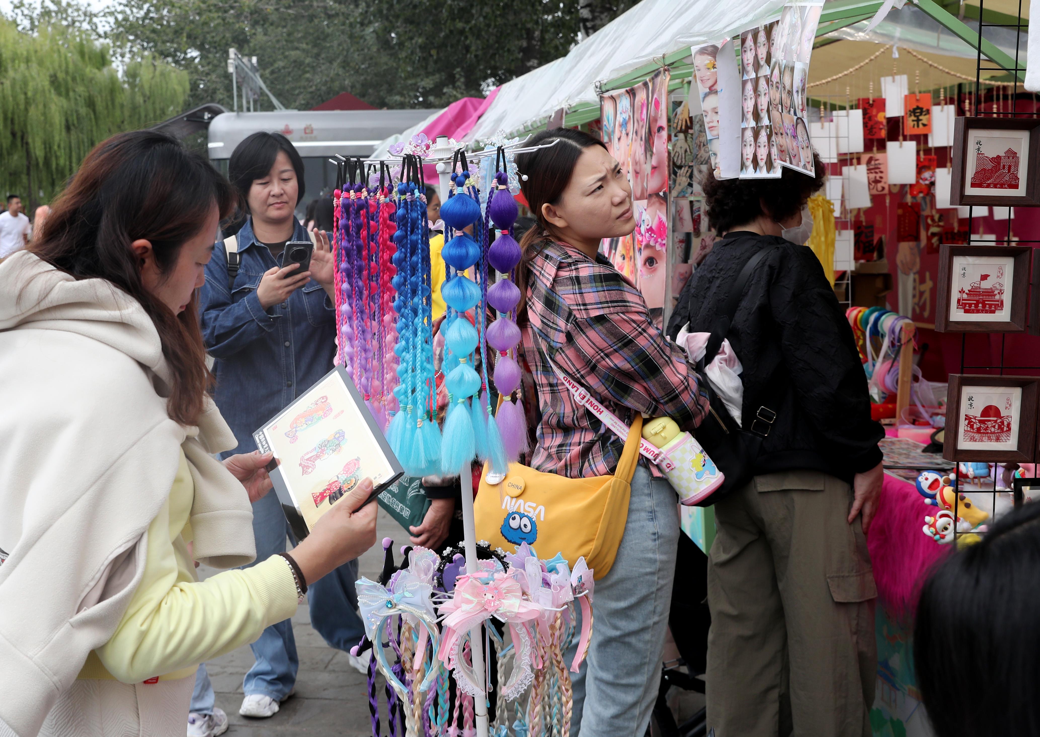近日,三山五園文化市集在北京頤和園開市,文創(chuàng)產(chǎn)品、特色小吃、非遺宋錦、非遺漆扇、老北京翻花等吸引了眾多游客。