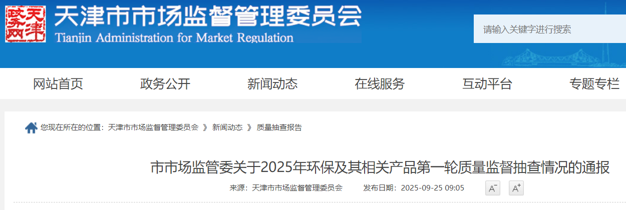 2025年環(huán)保及其相關(guān)產(chǎn)品第一輪質(zhì)量監(jiān)督抽查不合格產(chǎn)品及企業(yè)名單 | ||||||||||||||