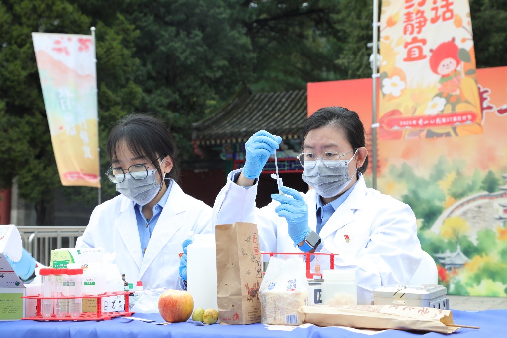 “移動(dòng)快檢車”為游客提供食品檢測(cè)。董芳忠/攝