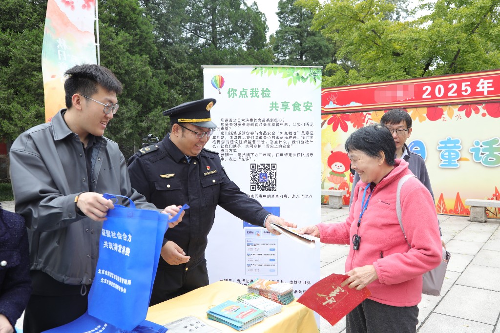 工作人員發(fā)放“你點(diǎn)我檢共享食安”宣傳材料。董芳忠/攝