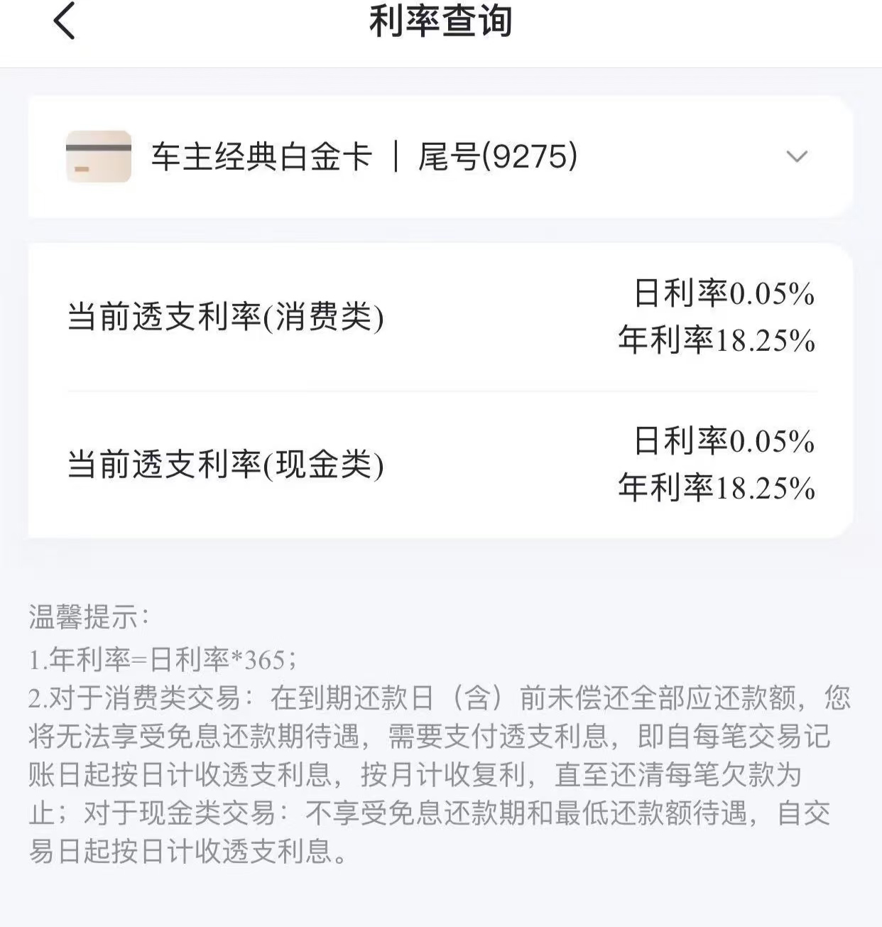 多數(shù)持卡人的透支利率仍為日息萬分之五。記者截圖自陽光惠生活APP