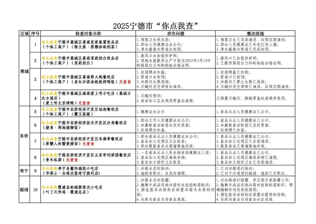 公示“你點我檢”檢查整改情況。寧德市市場監(jiān)管局供圖