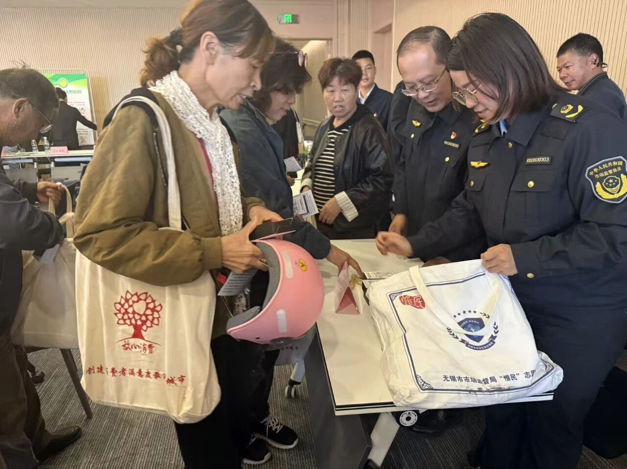 消費(fèi)者在咨詢(xún)臺(tái)前領(lǐng)取消費(fèi)維權(quán)手冊(cè)。無(wú)錫市市場(chǎng)監(jiān)管局供圖