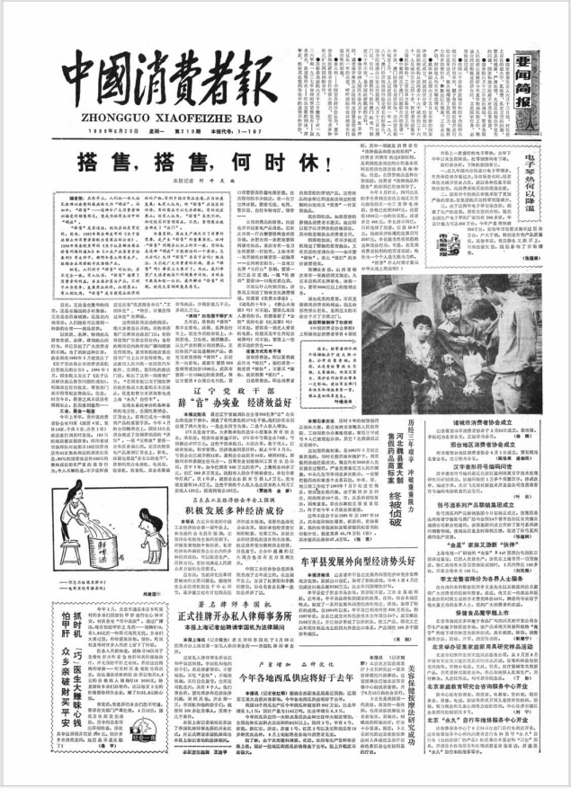 面對(duì)消費(fèi)者的持續(xù)投訴,中消協(xié)于1988年5月將相關(guān)情況整理成簡(jiǎn)報(bào)并向政府部門反映,同時(shí)借助新聞媒體公開曝光市場(chǎng)上的搭售亂象。