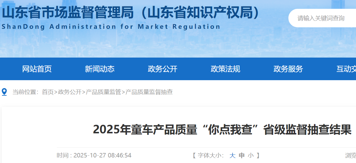 2025年第1批產(chǎn)品質(zhì)量省級監(jiān)督抽查共抽查童車產(chǎn)品27批次,其中,生產(chǎn)環(huán)節(jié)7批次,銷售環(huán)節(jié)15批次,網(wǎng)售環(huán)節(jié)5批次。