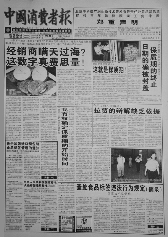 這一說法未能打消記者的疑慮。1997年7月4日,記者向德國駐華使館求證,得到的答復(fù)是:根據(jù)德國食品包裝法規(guī),該數(shù)字為“保質(zhì)期終止日期”。