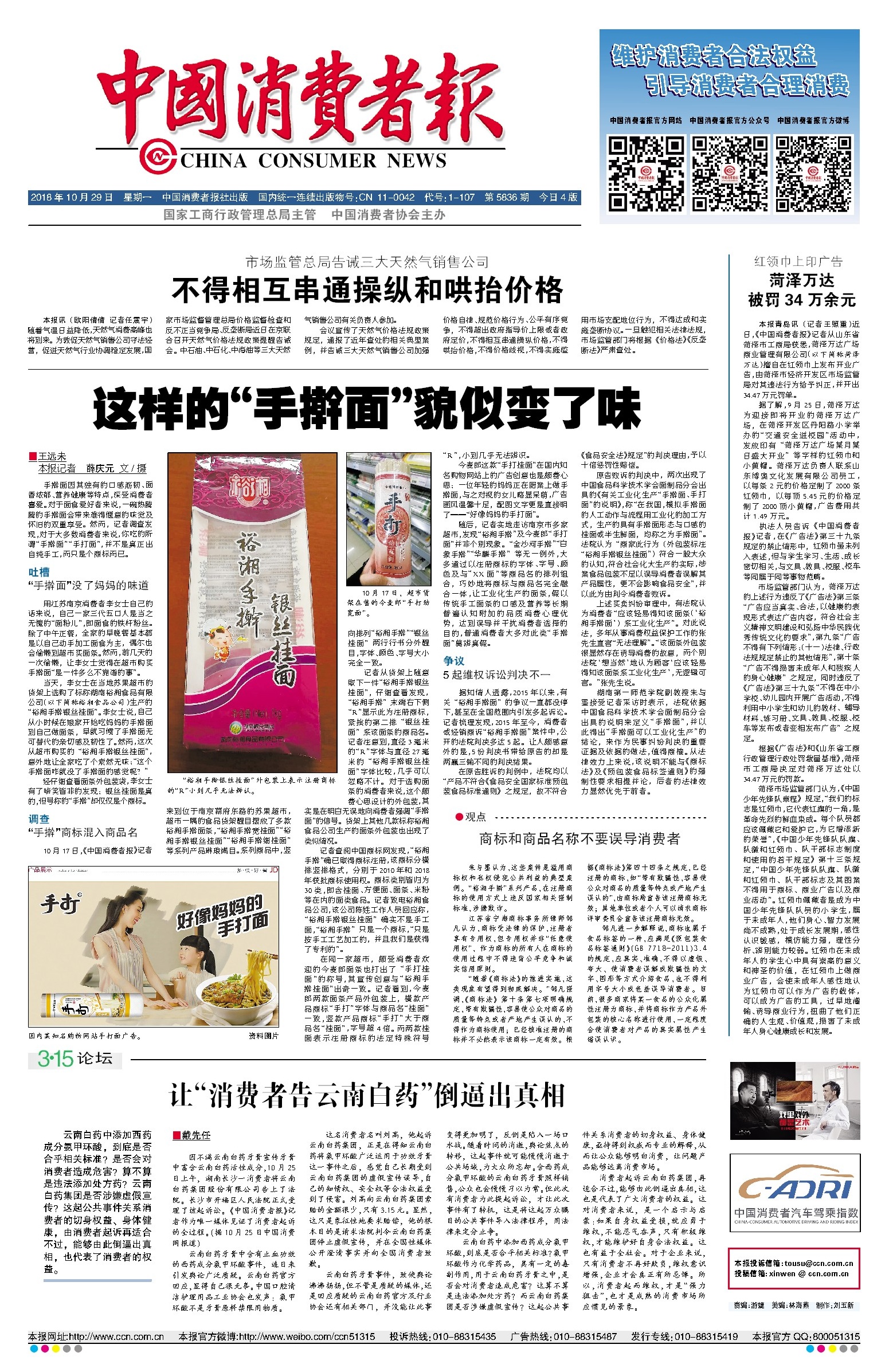 2018年10月29日,《中國消費(fèi)者報(bào)》一篇深度調(diào)查報(bào)道——《這樣的“手搟面”貌似變了味》,直指“裕湘手搟銀絲掛面”“今麥郎手打掛面”等產(chǎn)品涉嫌以機(jī)制面冒充手搟面,通過濫用手搟、手打等商標(biāo)進(jìn)行虛假宣傳,誤導(dǎo)消費(fèi)者的問題。為核實(shí)市場情況,記者深入市場一線調(diào)研,走訪了數(shù)十家超市,主動(dòng)對接銷售商家和生產(chǎn)廠家,并在江蘇地區(qū)開展了消費(fèi)者問卷調(diào)查。調(diào)研結(jié)果顯示,75.23%的消費(fèi)者愿為手工制作支付溢價(jià)。但消費(fèi)者并不清楚的是,市場上不少宣稱手工制作的面條,實(shí)際上是工業(yè)化生產(chǎn)的產(chǎn)品。