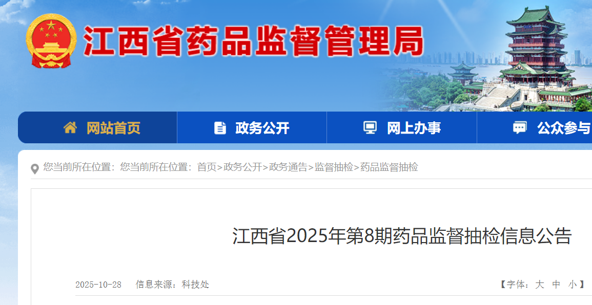 江西省藥品監(jiān)督管理局官網(wǎng)截圖