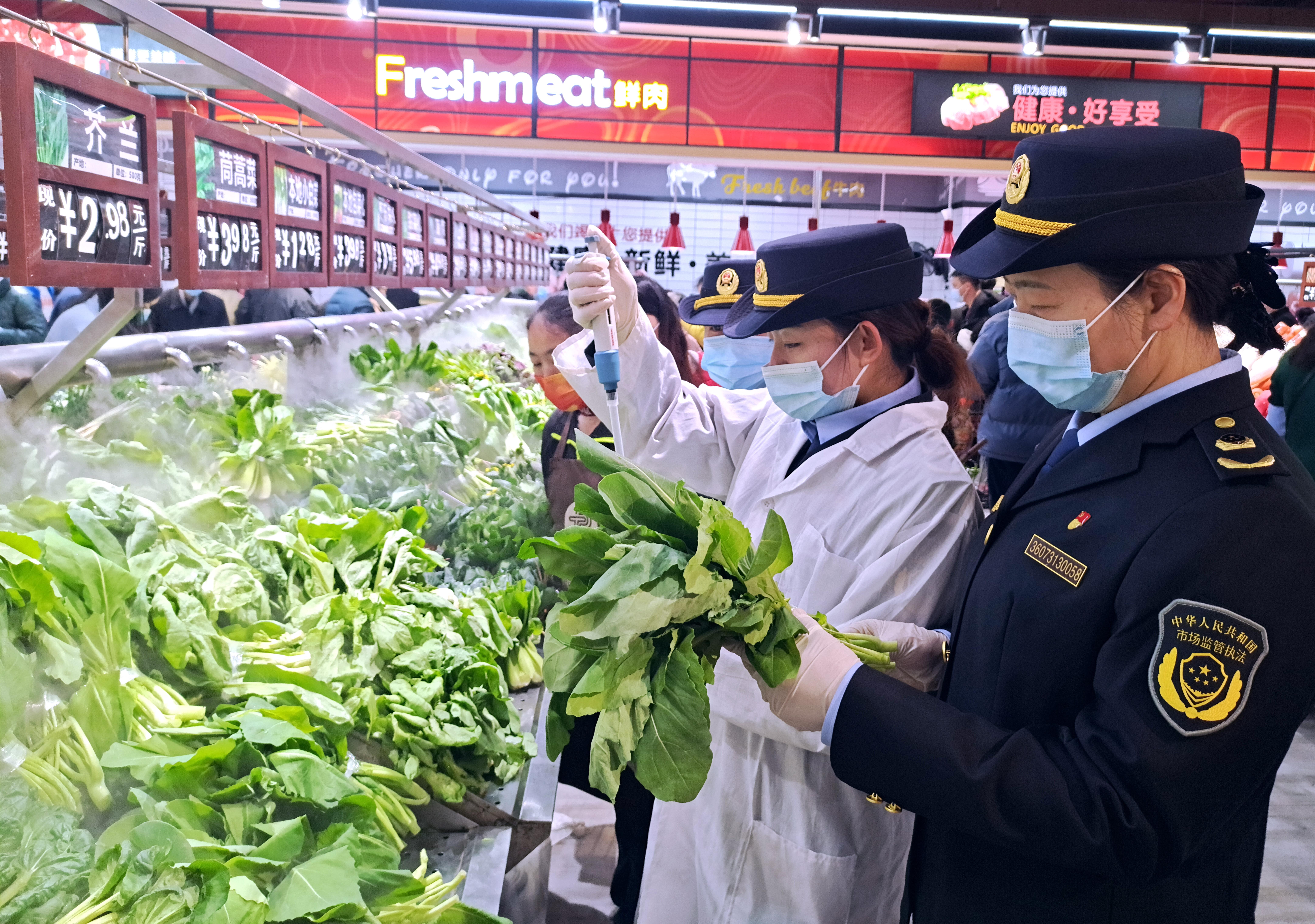 執(zhí)法人員在商超開展食品安全檢測。贛州市市場監(jiān)管局供圖