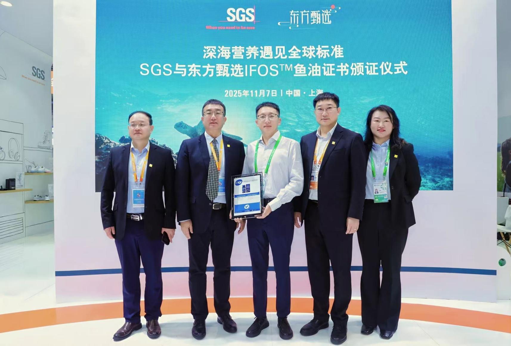 東方甄選榮獲SGS機(jī)構(gòu)頒發(fā)的IFOS?魚(yú)油證書(shū)。資料圖片