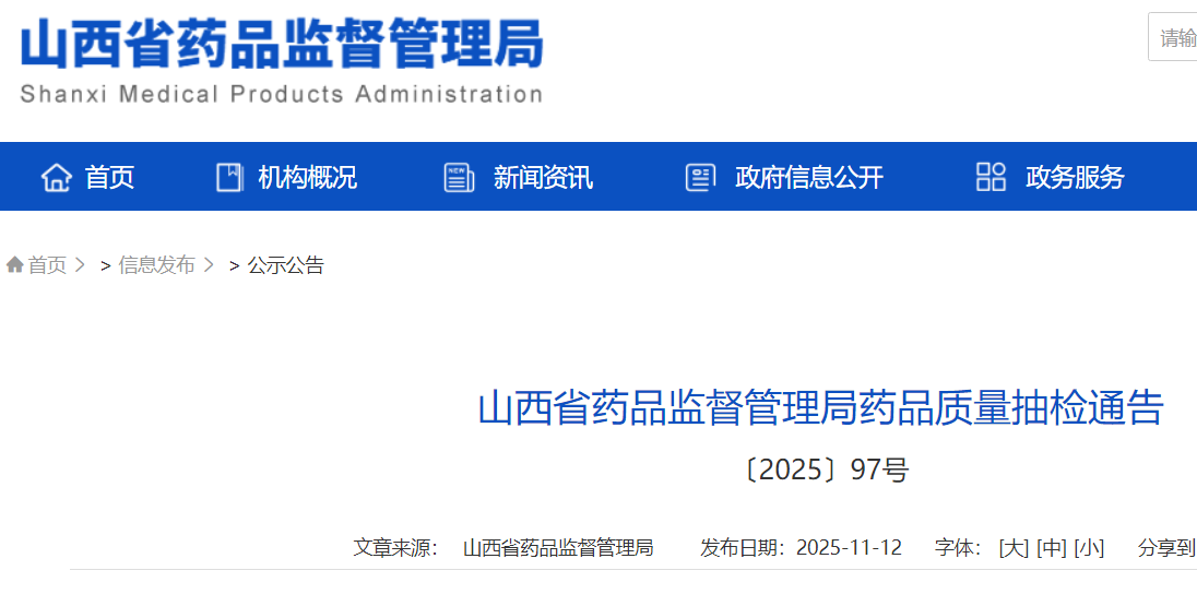 為加強(qiáng)藥品質(zhì)量監(jiān)管,保障公眾用藥安全有效,按照《2025年山西省藥品監(jiān)督抽檢計(jì)劃》,山西省藥品監(jiān)督管理局組織對(duì)全省藥品生產(chǎn)、經(jīng)營(yíng)、使用環(huán)節(jié)進(jìn)行藥品質(zhì)量抽查檢驗(yàn)。現(xiàn)將抽檢發(fā)現(xiàn)不符合規(guī)定的4批次藥品信息予以通告(詳見附件)。