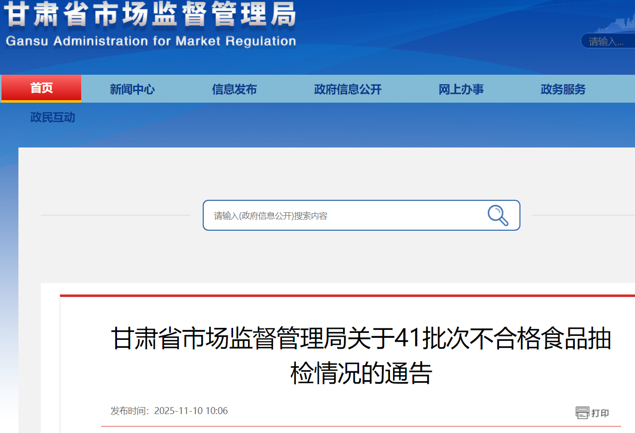 近期,甘肅省市場(chǎng)監(jiān)管局組織食品安全監(jiān)督抽檢3316批次樣品,檢出41批次樣品不合格。產(chǎn)品抽檢結(jié)果可查詢https://spcjsac.gsxt.gov.cn/。