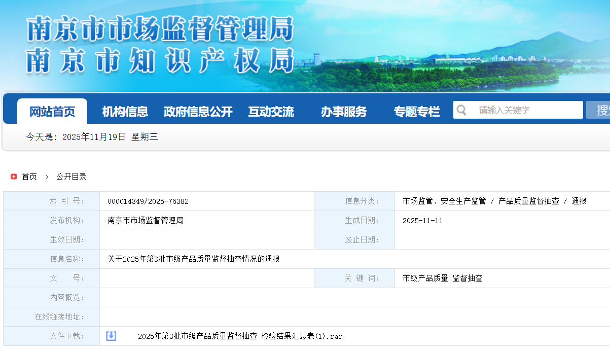 2025 年7月至10月,市市場監(jiān)管局組織對食品相關產(chǎn)品、輕工產(chǎn)品、機械及安防、電子電器、電工及材料產(chǎn)品、日用及紡織品6大類20種產(chǎn)品質(zhì)量進行了監(jiān)督抽查?,F(xiàn)將3批市級產(chǎn)品質(zhì)量監(jiān)督抽查情況通報如下: