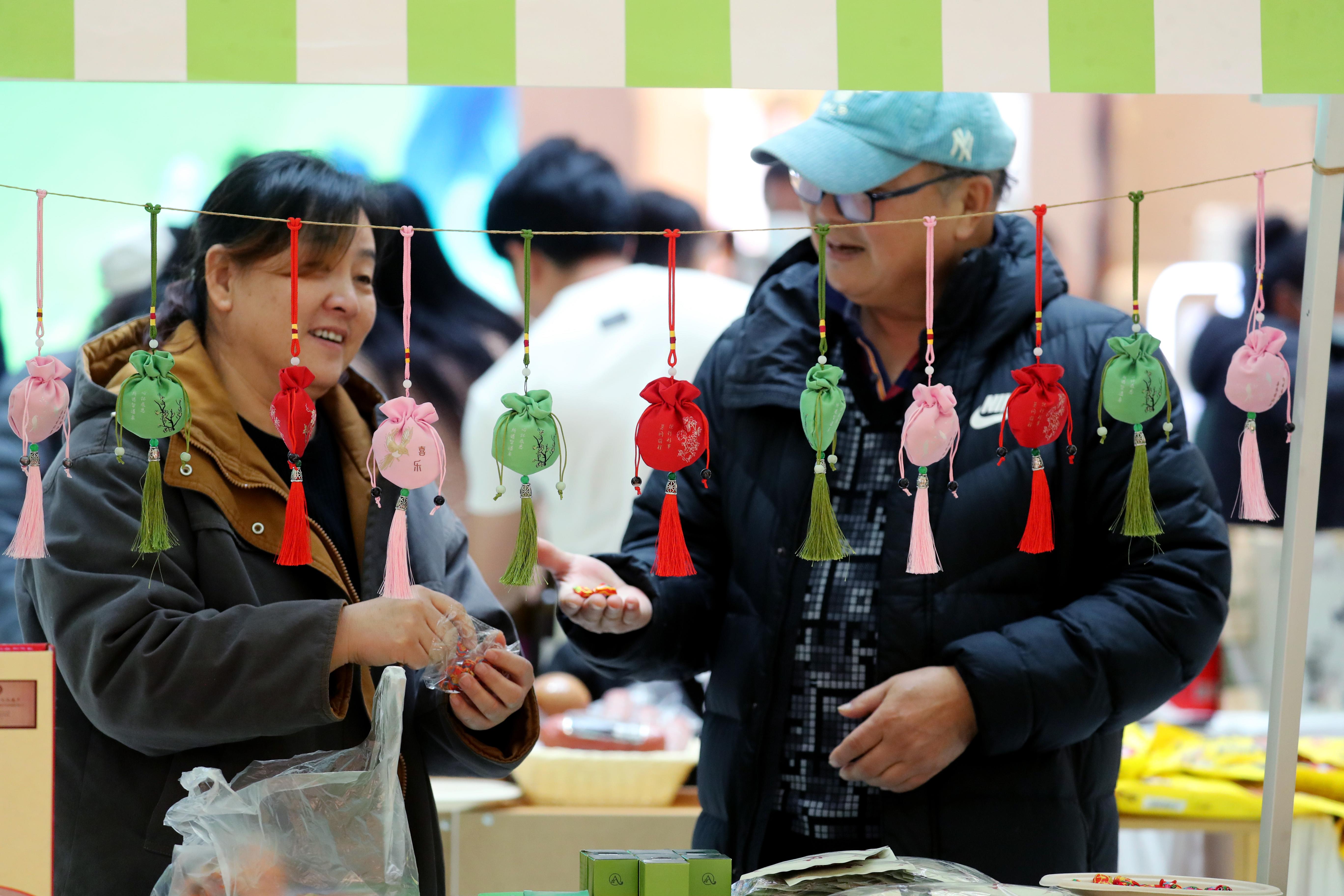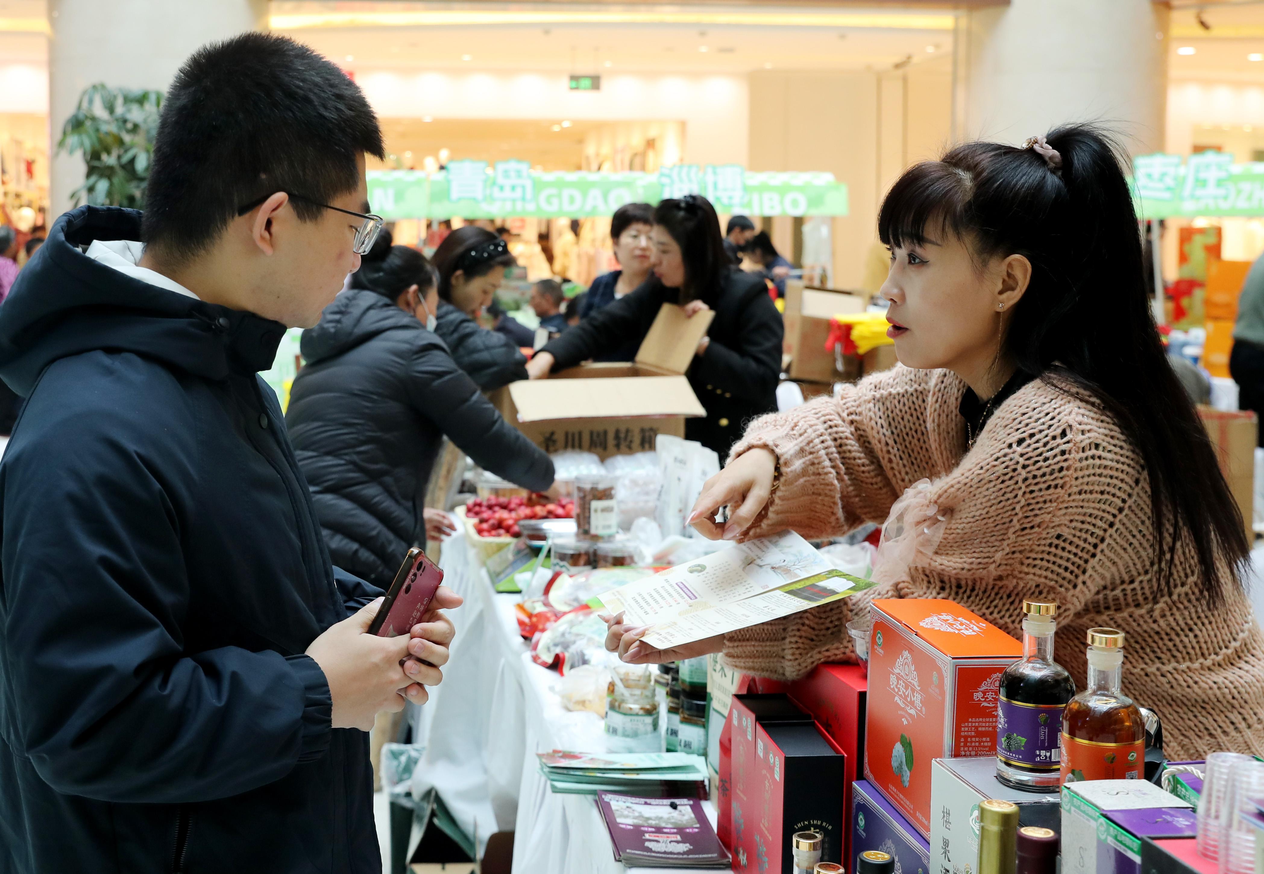 工作人員向消費(fèi)者介紹農(nóng)產(chǎn)品。