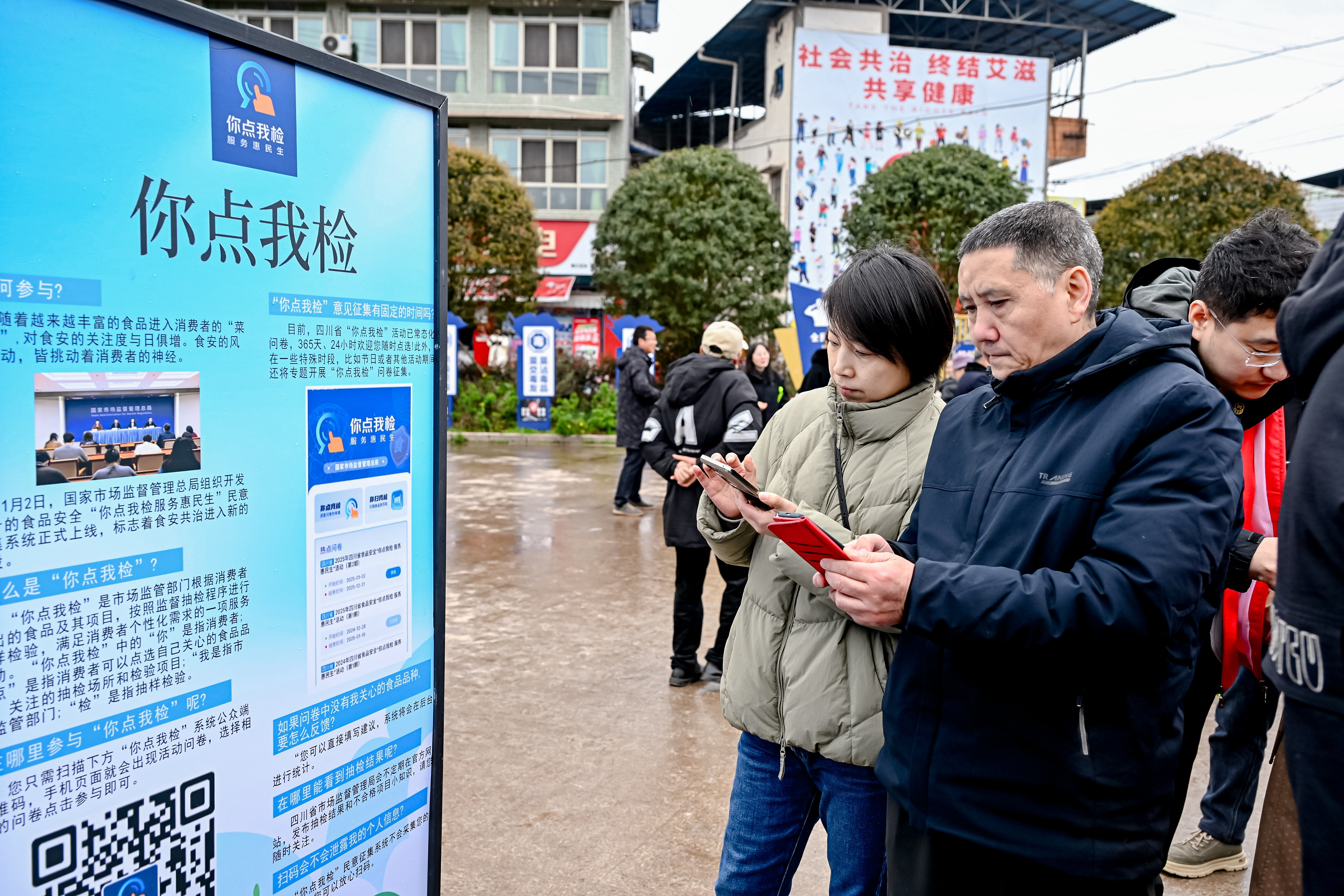 市民現(xiàn)場掃碼參與“你點我檢”。 四川省市場監(jiān)管局供圖