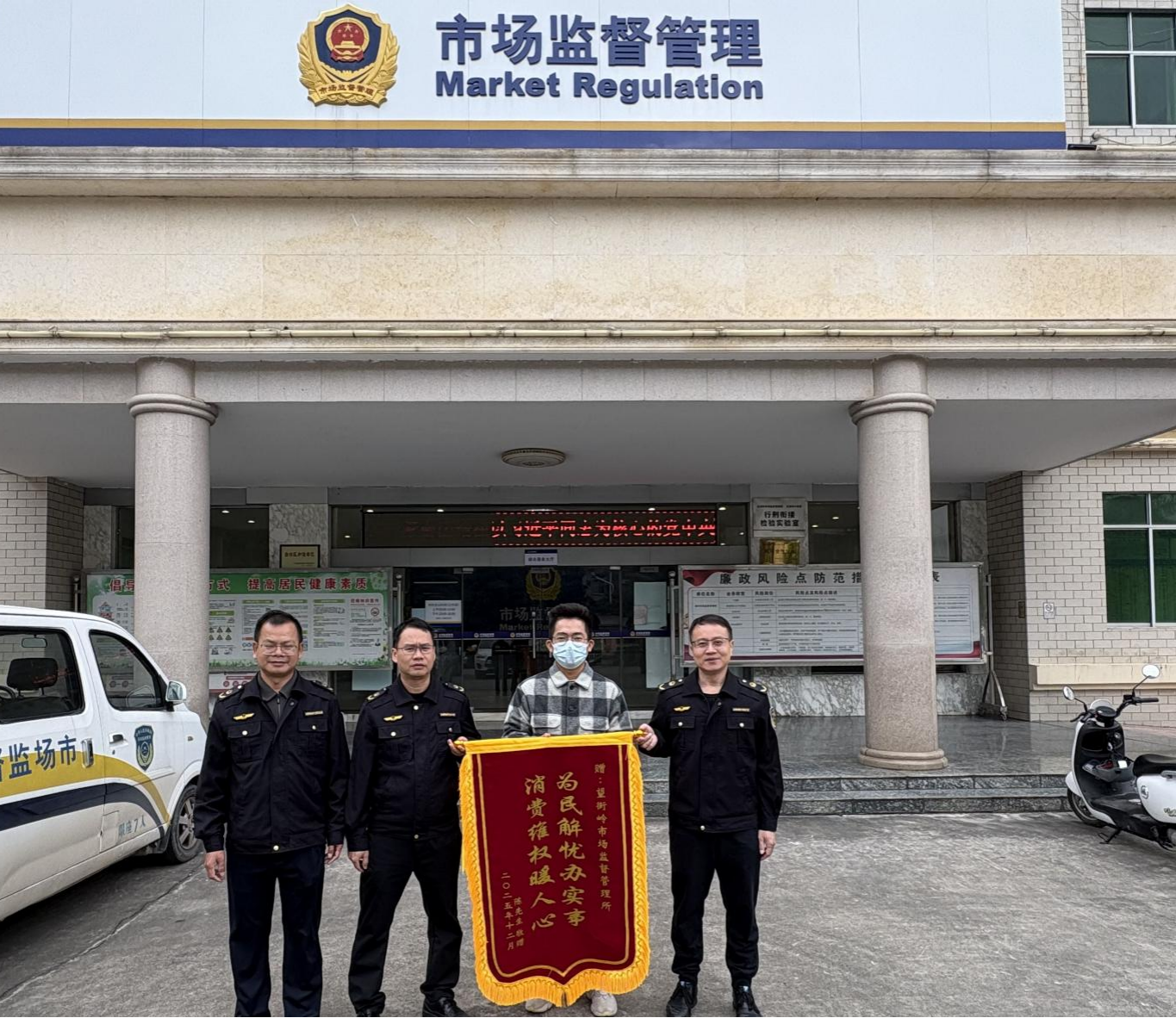 消費(fèi)者贈(zèng)送錦旗。北流市市場(chǎng)監(jiān)管局供圖